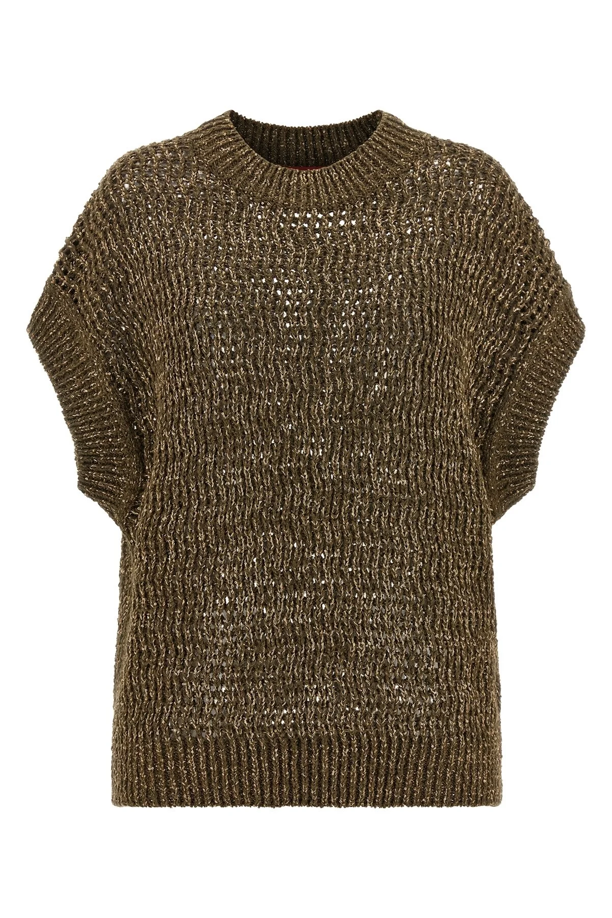 cod. 2616361101600002 Mesh stitch 'MstArmonia' cotton tape sweater with all-over sequin applique, crew neck, dropped shoulder. Color: Green Size & Fit: Comfort fit Composition: 44% cotton 43% polyester 13% polyamide Made in: Romania