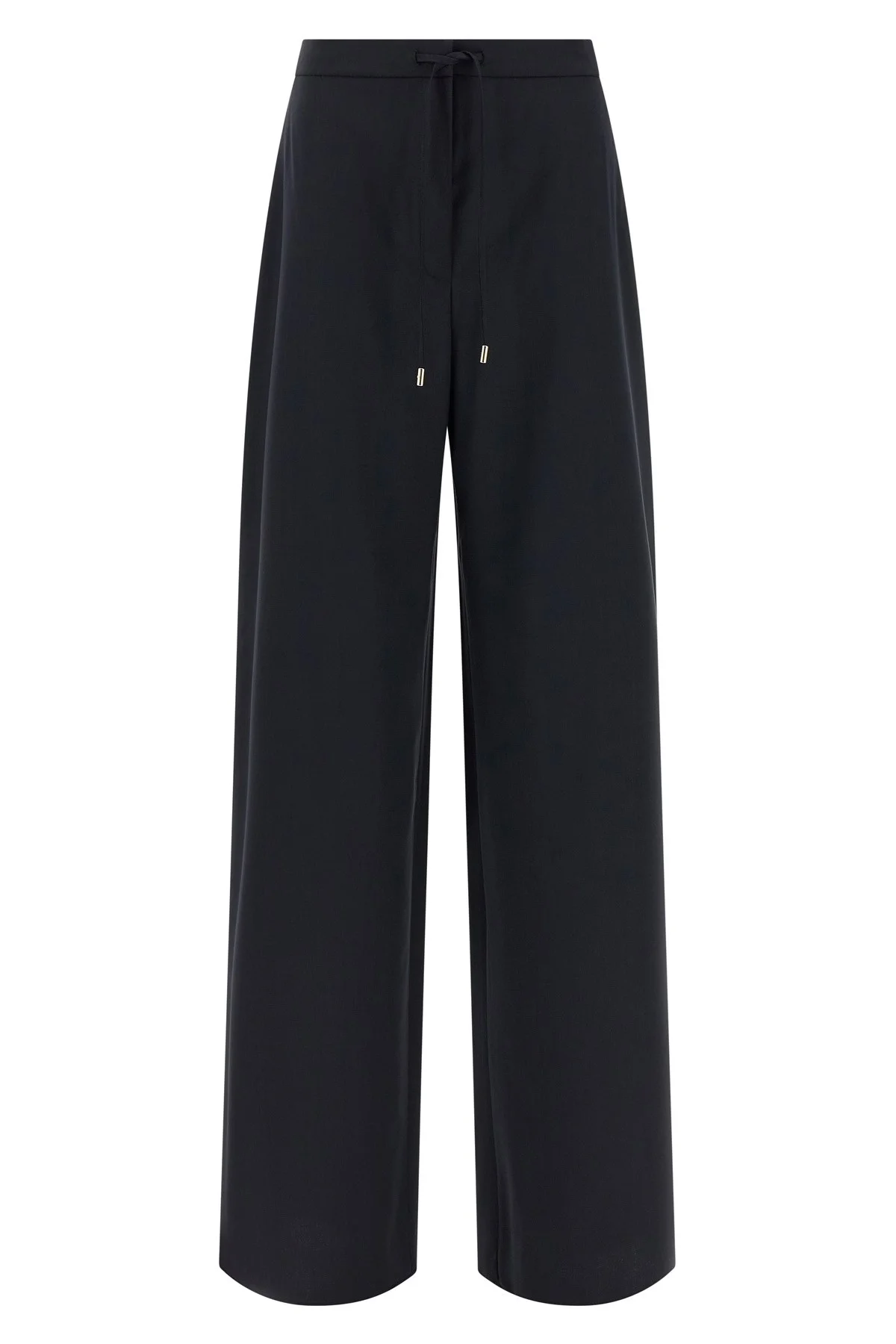 cod. 2616131091600008 'Mstcorone' wool trousers, straight and wide leg, elastic waistband with adjustable drawstring, back pin tucks, front hook and button zip closure, slanted side pockets with tonal visible stitching. Color: Blue Size & Fit: Tue to size fit Composition: 100% virgin wool Made in: Romania
