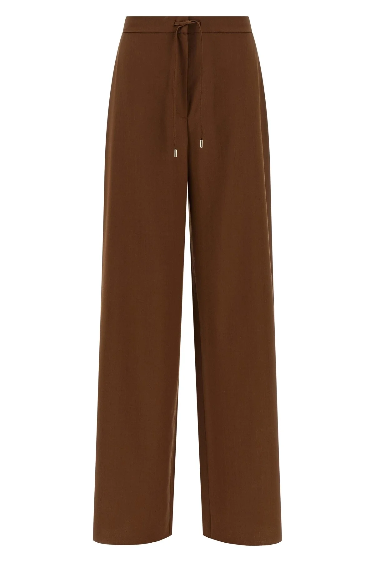 cod. 2616131091600003 'Mstcortone' wool pants, straight and wide leg, elastic waistband with adjustable drawstring, back pleats, front hook and button zip closure, slanted side pockets with tone-on-tone visible stitching. Color: Brown Size & Fit: True to size fit Composition: 100% virgin wool Made in: Romania
