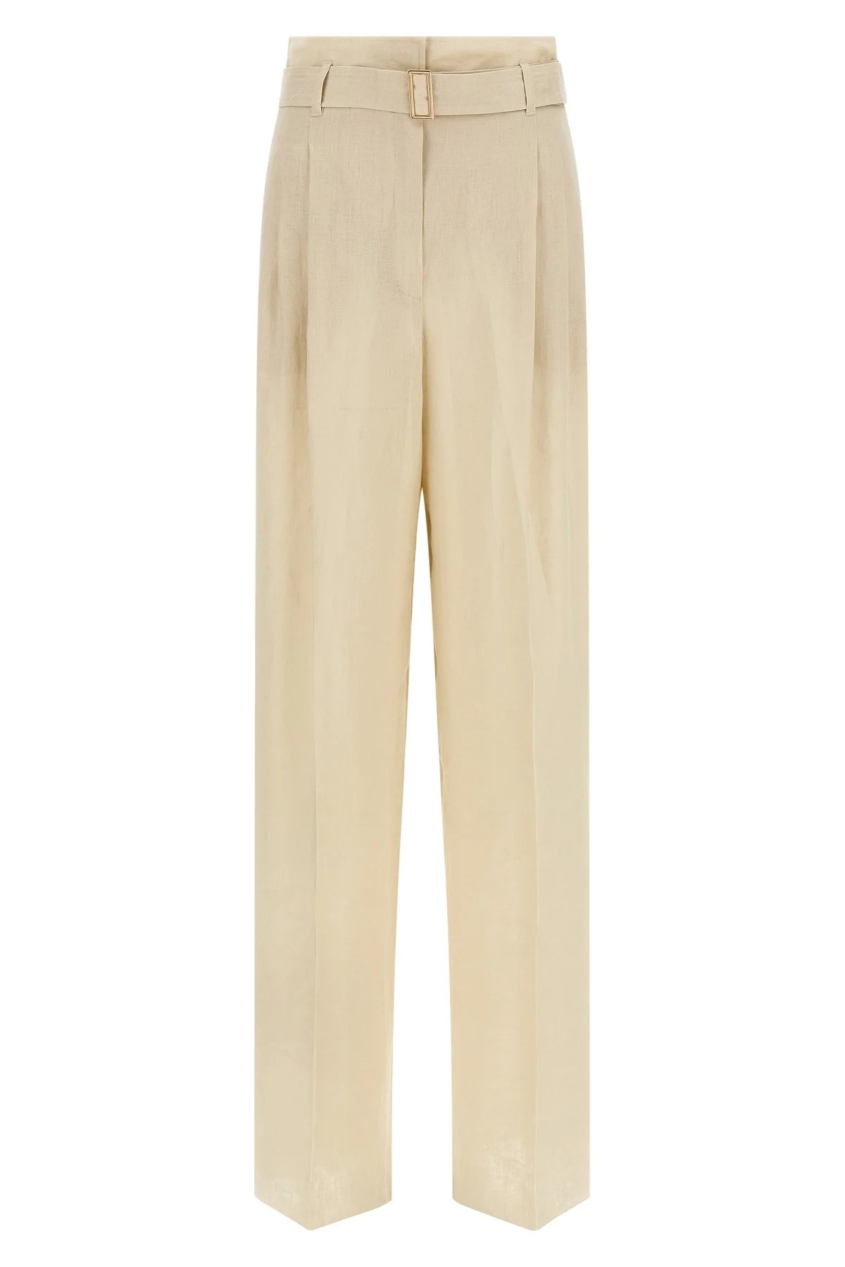 cod. 2616131092600007 'MstMateria' trousers in pure washed pure linen light canvas, wide leg, stretched pleat, front and back pincer, high waist, zip hook and front button closure, French pockets with front tailored dot, hem to be finished, removable matching belt. Color: Beige Size & Fit: true to size fit Composition: 100% linen Made in: China