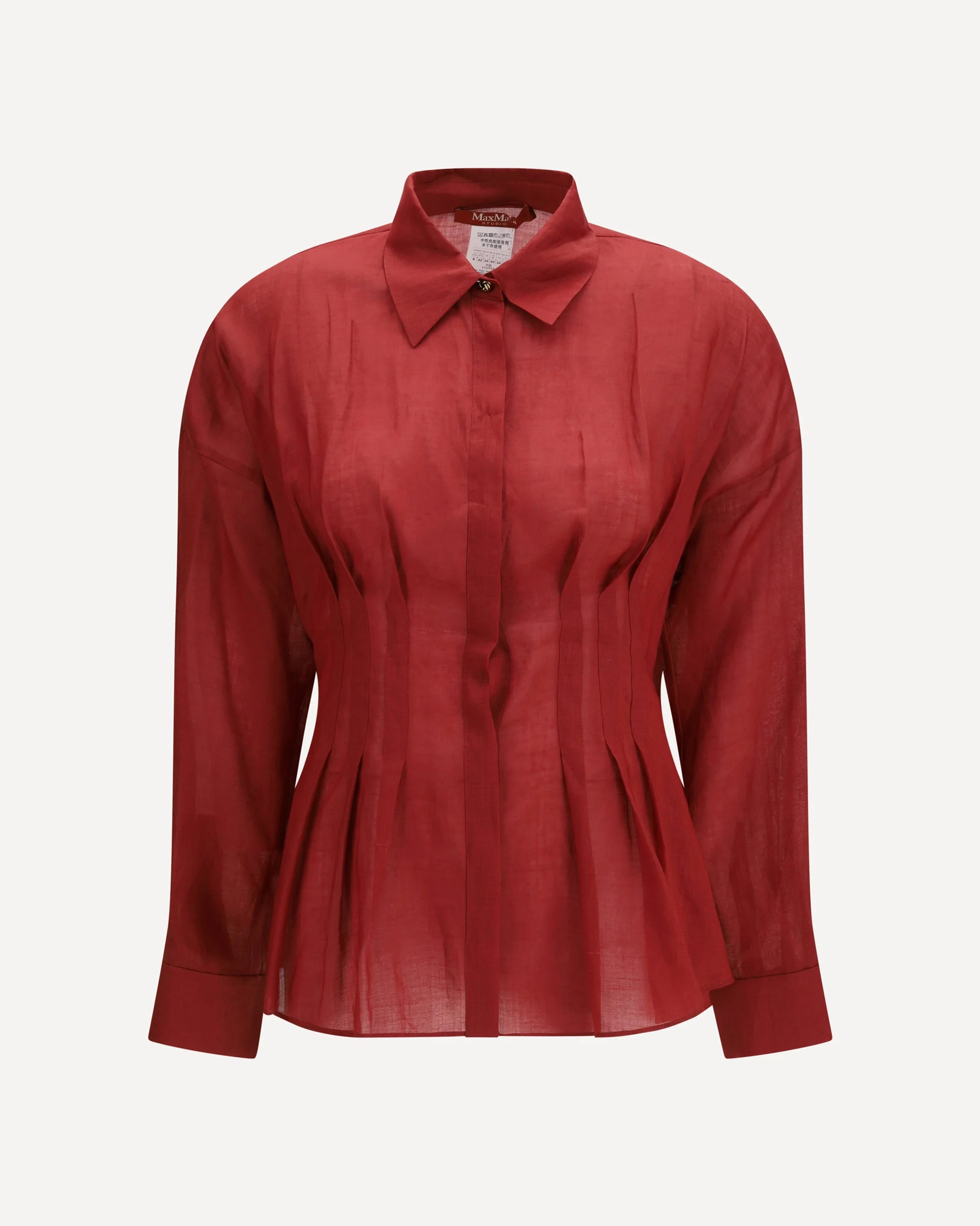 The Tora Shirt by Max Mara Studio stands out for a refined silhouette that enhances the figure with a balance of structure and lightness. The Tora model by Max Mara Studio is crafted in ramie and features a classic collar with concealed front buttons that define a clean and elegant design. Pleated dart details shape the bodice with an effect reminiscent of corset construction. Long sleeves and a regular fit complete the Tora shirt by Max Mara Studio with a balanced and contemporary silhouette. DETAILS - Sku: 2616111042600_066 - Season: SS26 - Fit: Regular - Composition: GENERAL 100% Ramie - MADE IN CHINA