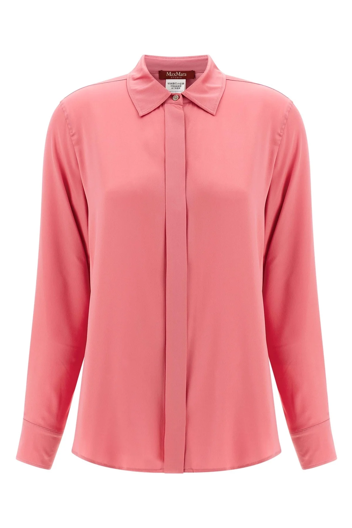 cod. 2526116012600066 'Xero' silk satin shirt, collar, front button closure, long sleeves with cuffs and jewel buttons. Color: Pink Size & Fit: True to size fit Composition: 93% silk, 7% elastane Made in: China