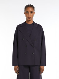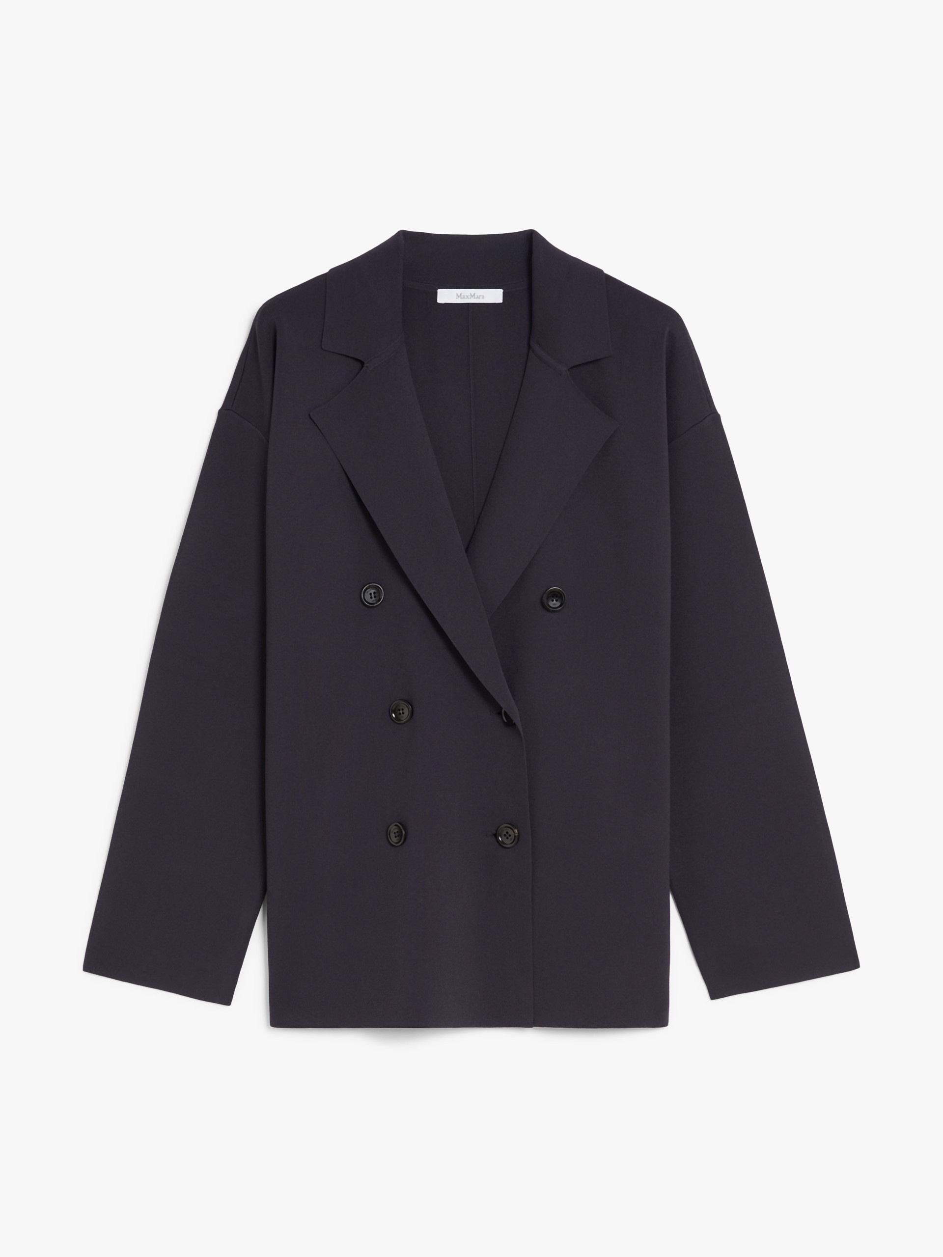 DETAILS Short double-breasted jacket in soft viscose crepe interlock yarn. The comfort-fit model boasts a lapel collar, drop-shoulder long sleeves and a small central rear vent. Button fastening. COMPOSITION AND CARE 65% viscose, 35% polyamide. Hand wash cold; do not bleach; do not tumble dry; flat drying in the shade; cool iron; professionally dry clean perchloroethylene - mild process; do not wet clean.; iron with a cloth between.; using neutral detergent. Distributed by Max Mara S.r.l., registered office in Reggio Emilia (Italy), Via Giulia Maramotti 4, 42124 (IT)