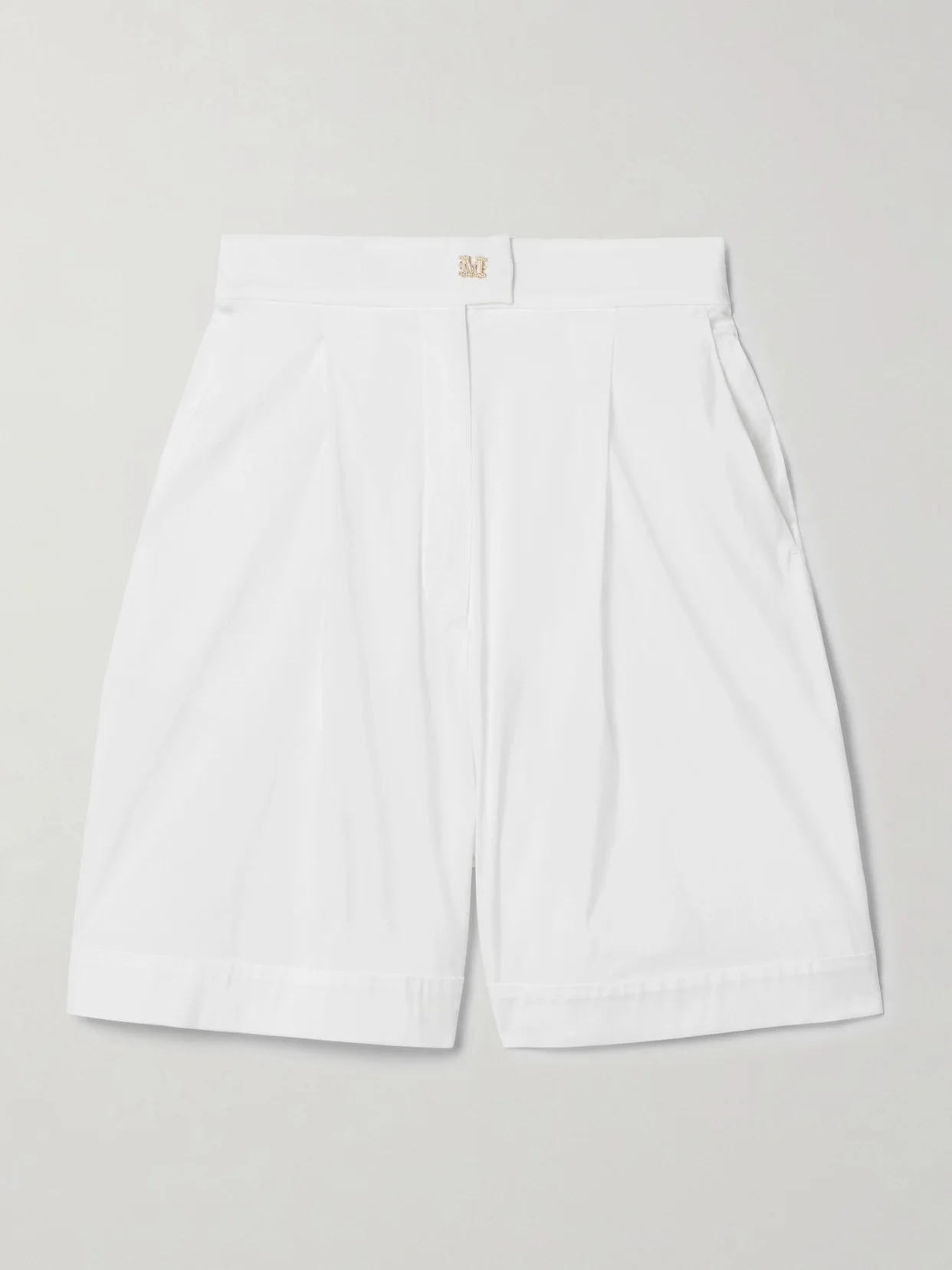 Max Mara's 'Sultano' shorts are equally chic and comfortable. Tailored from cotton-blend poplin, they have a partially elasticated waistband and sharp pleats that give the straight-legs subtle volume. Look closely and you'll spot a gold-tone logo in place of a traditional button.