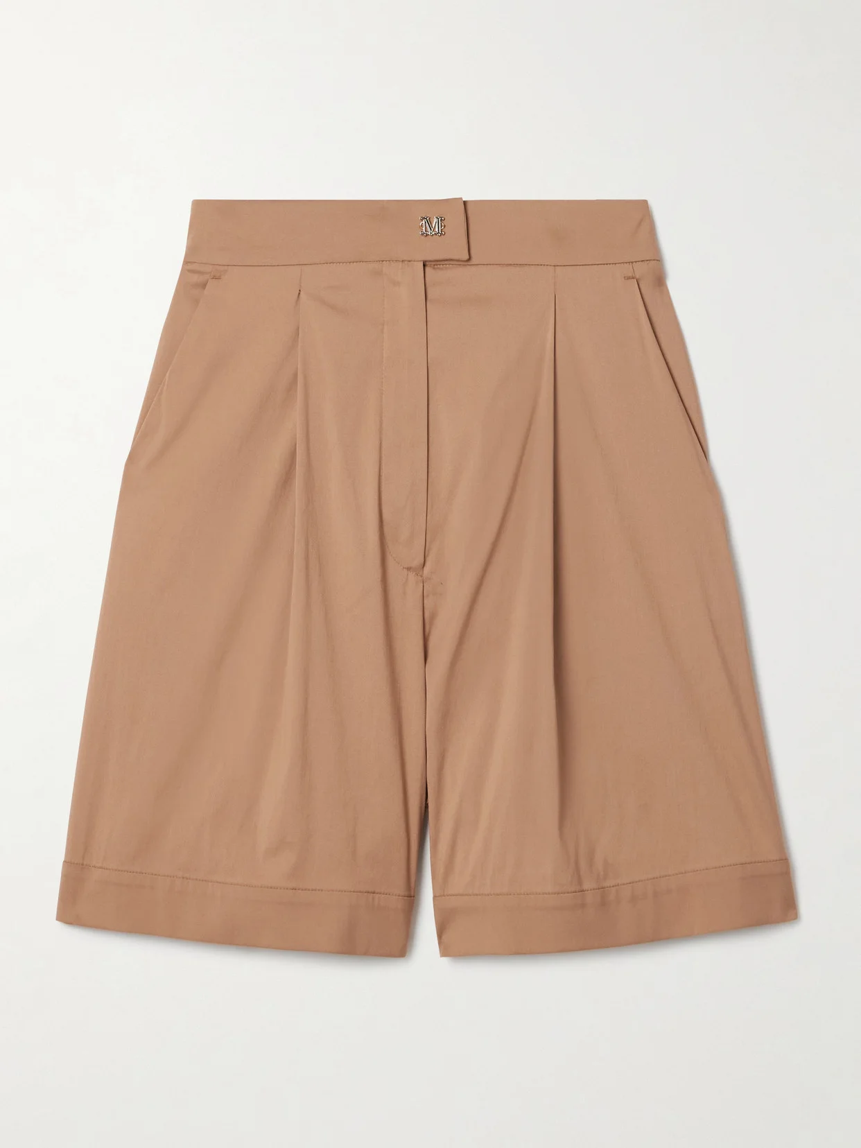 Max Mara's 'Sultano' shorts are equally chic and comfortable. Tailored from cotton-blend poplin, they have a partially elasticated waistband and sharp pleats that give the straight-legs subtle volume. Look closely and you'll spot a gold-tone logo in place of a traditional button.
