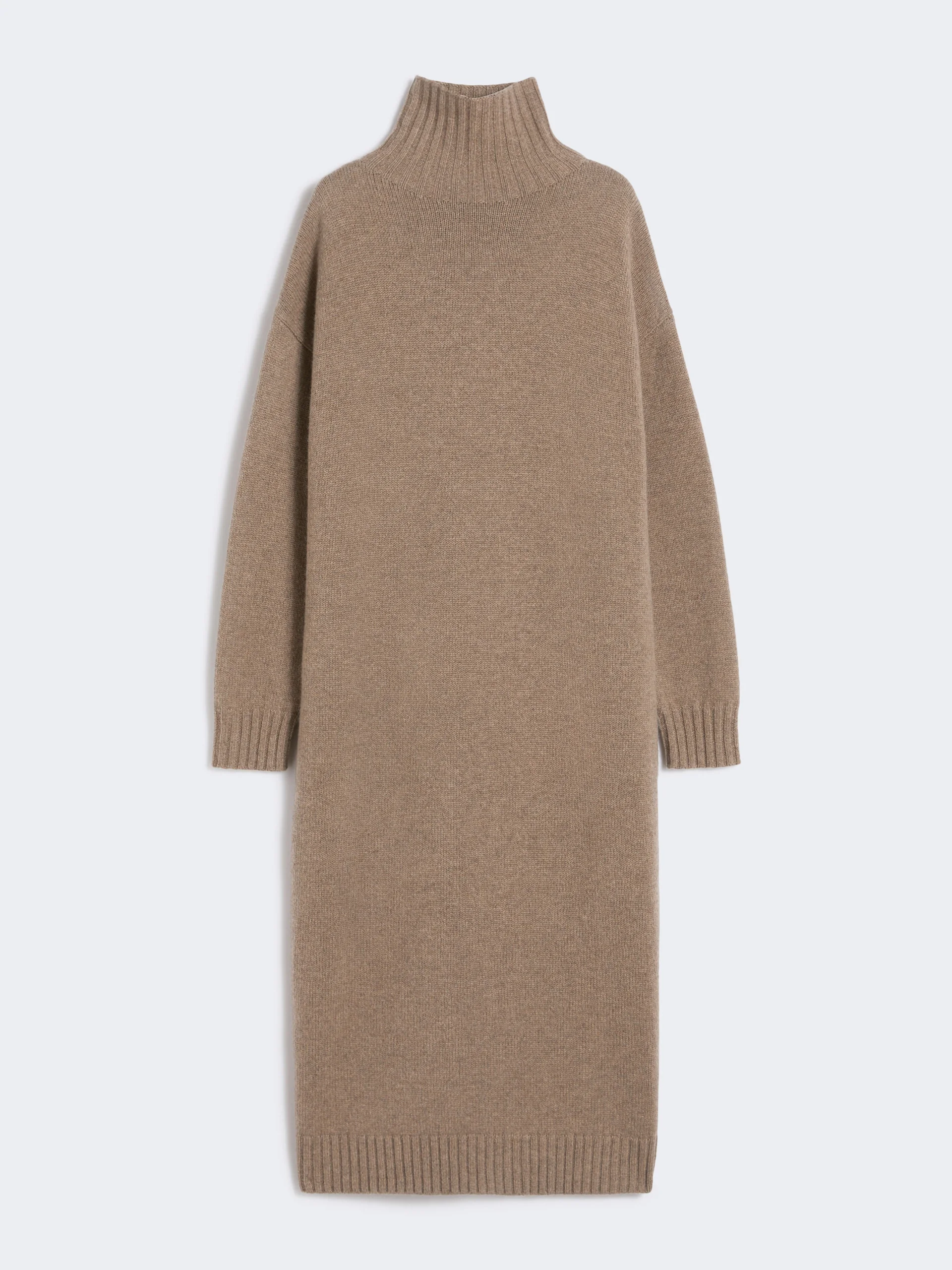 DETAILS Long dress with an oversized fit. Pure cashmere plain-knit dress Straight cut High neck Long sleeves with dropped shoulders Finished with ribbed edges COMPOSITION AND CARE 100% cashmere. Hand wash cold (40°c max); do not bleach; do not tumble dry; flat drying in the shade; cool iron; professionally dry clean perchloroethylene - mild process; do not wet clean.; iron with a cloth between.; using neutral detergent. Distributed by Max Mara S.r.l., registered office in Reggio Emilia (Italy), Via Giulia Maramotti 4, 42124 (IT)