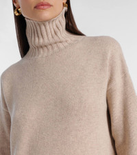 Max Mara's heritage of Italian craftsmanship is applied to sophisticated silhouettes and neutral color palettes. The Summer midi dress is crafted from pure cashmere and designed with long sleeves and a turtleneck for added warmth. Product Details - Material: 100% cashmere - Care instructions: hand wash - Made in China - Designer color name: Cacha Chiaro - Item color: beige - Collar: turtleneck - Cuff: ribbed - Hem: ribbed - Item number: P01090298 Size & Fit - True to size - Dropped shoulders - Designed for a loose fit - Stretchy fabric - The model seen in the picture is 178cm-5'10" and wearing a size XS