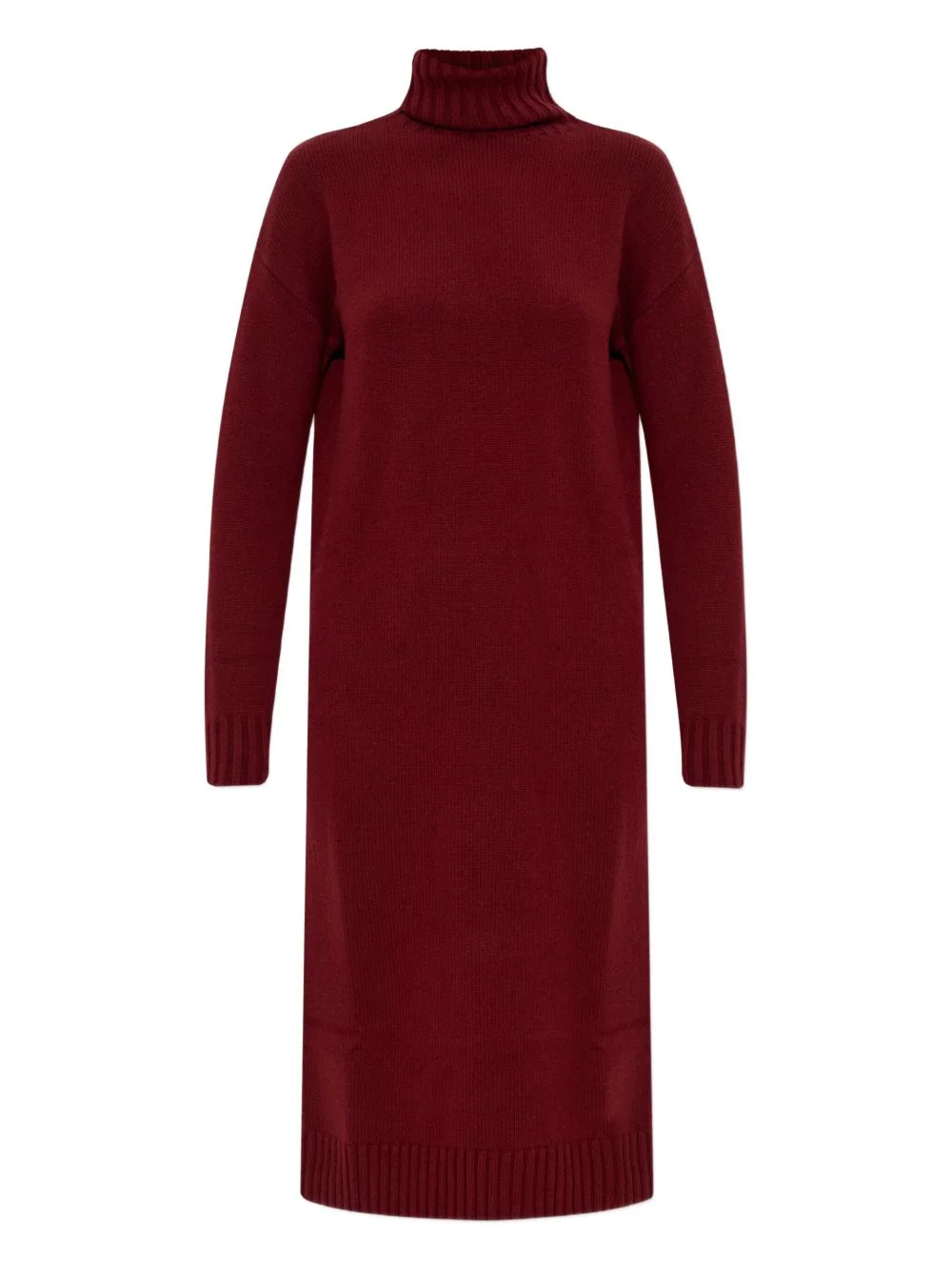 roll-neck knitted dress Highlights - Dark red - Roll neck - Long sleeves - Knitted - Ribbed detail - Midi length Made in Italy Composition Cashmere 100% Washing instructions Hand Wash