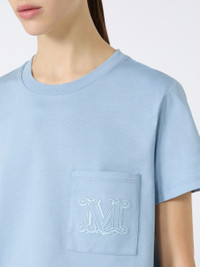 DETAILS Straight-cut T-shirt with chest pocket and matching embroidered M Monogram detail. Pure cotton jersey T-shirt Regular fit Ribbed neckline Short set-in sleeves COMPOSITION AND CARE Jersey fabric 100% cotton; - exclusive of embroideries. Machine wash cold delicate cycle; do not bleach; do not tumble dry; flat drying in the shade; cool iron; professionally dry clean perchloroethylene - mild process; professional wet cleaning - very mild process.; iron with a cloth between.; using neutral detergent.; turn the articles inside out before washing.; to be ironed on reverse. Distributed by Max Mara S.r.l., registered office in Reggio Emilia (Italy), Via Giulia Maramotti 4, 42124 (IT)