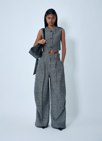 High-waisted tailored pants in wool-and-silk grain-de-poudre. - High rise - Front hook-and-eye and zip-fly fastening - Belt loops - Front pleats - Rear jet pockets - 70% Wool, 30% Silk. Dry clean - Color: Grey - Code: 2521136062600 001