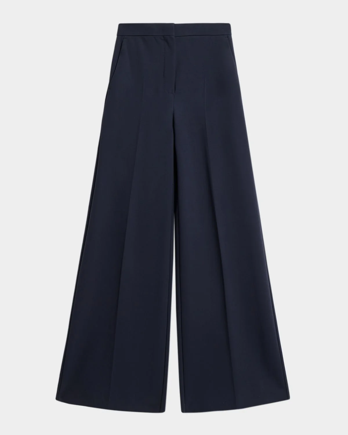 The "Taverna" pants from Max Mara are cut from fluid jersey fabric, finished with crisp pressed pleats down each leg High-rise sits high on the hips Flat front Side slant pockets Full length Wide legs Hook-and-bar/zip fly Viscose/polyester/elastane Dry clean Made in Italy SIZE & FITModel measurements: 5 & apos;10" tallModel is wearing a US size 4/Small
