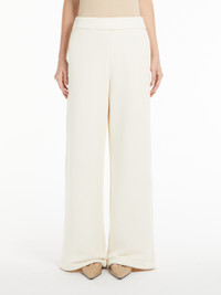 DETAILS Long trousers in soft cotton fleece fabric featuring a wide leg, elasticated waistband and side-inset welt pockets. COMPOSITION AND CARE 91% cotton, 9% polyester. Machine wash cold delicate cycle; do not bleach; do not tumble dry; flat drying in the shade; cool iron; professionally dry clean perchloroethylene - mild process; professional wet cleaning - very mild process.; iron with a cloth between.; using neutral detergent.; put this item into a string bag before washing it. Distributed by Max Mara S.r.l., registered office in Reggio Emilia (Italy), Via Giulia Maramotti 4, 42124 (IT)