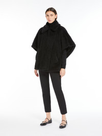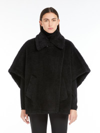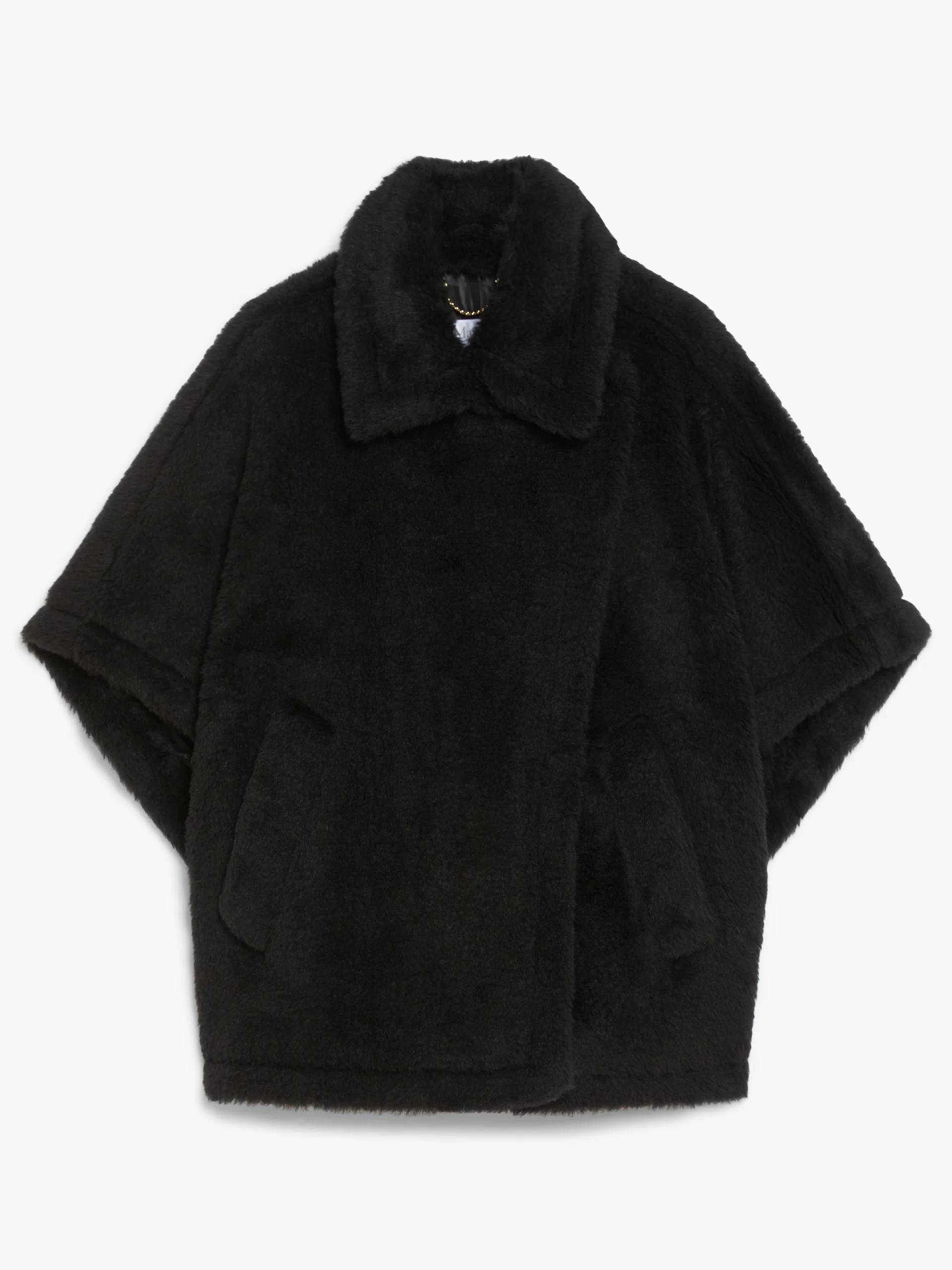 DETAILS Short cape featuring an enveloping fit and side slits. Cape in alpaca and wool Teddy fabric, set on a silk base The 2-in-1 collar can either be worn open with the lapels visible or buttoned up Short kimono sleeves Asymmetrical button fastening Diagonal-welt pockets at the sides Viscose lining COMPOSITION AND CARE Jersey fabric 62% alpaca, 26% virgin wool, 12% silk; lining 100% viscose. Do not wash; do not bleach; do not tumble dry; do not iron; professionally dry clean perchloroethylene - mild process; do not wet clean. Distributed by Max Mara S.r.l., registered office in Reggio Emilia (Italy), Via Giulia Maramotti 4, 42124 (IT)