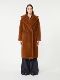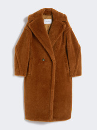 DETAILS Designed in 2013, the Teddy Bear Coat was inspired by an archival garment from the '80s and immediately became an it-coat. Stars and influencers loved its perfect alchemic blend of glamour and playfulness. Its distinctive texture is created using advanced technology, developed by our creative team in collaboration with an Italian supplier, to create a one-of-a-kind faux fur. The coat's abundant volume is a celebration of the opulent extravagance of this fabric. Made of alpaca and wool on a silk base Oversized fit Lapel collar Low-set sleeves Horizontal welt pockets Double-breasted closure Branded lining Horn buttons Length: 110 cm / 43 inches COMPOSITION AND CARE Jersey fabric 62% alpaca, 26% virgin wool, 12% silk; lining 100% viscose. Do not wash; do not bleach; do not tumble dry; do not iron; professionally dry clean perchloroethylene - mild process; do not wet clean.; protect buttons before washing.; contains non-textile parts of animal origin. Distributed by Max Mara S.r.l., registered office in Reggio Emilia (Italy), Via Giulia Maramotti 4, 42124 (IT)