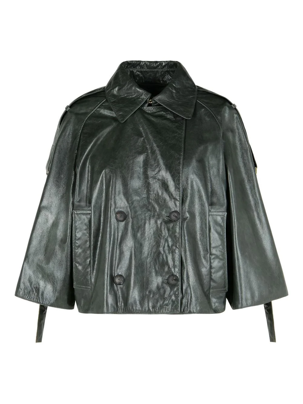pointed-collar double-breasted leather jacket Highlights - Grey - Leather - Pointed collar - Double-breasted button closure - Side welt pockets Made in Italy Composition Calf Leather 100% Washing instructions Read Manufacturer Guidelines