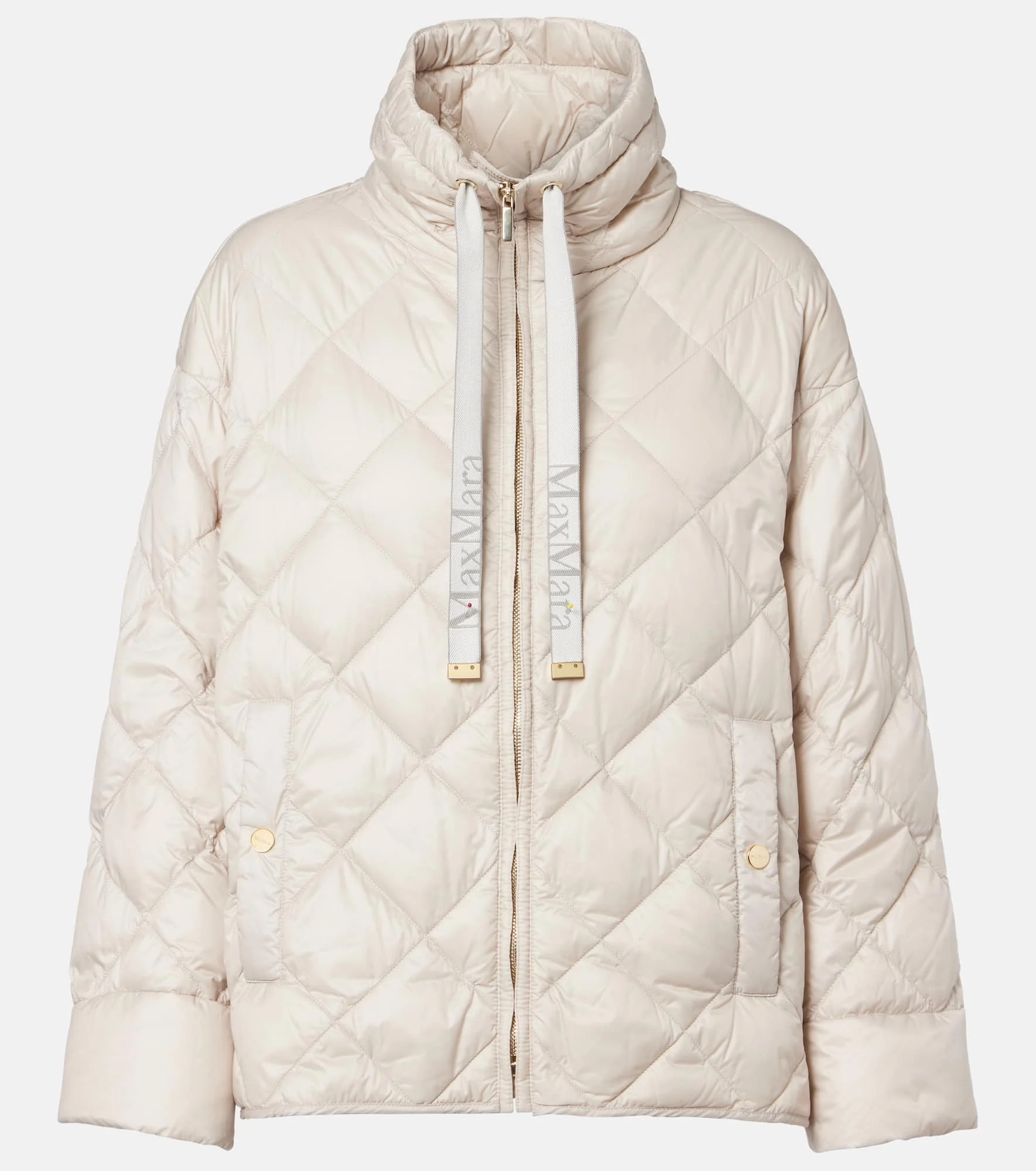 Since its inception in 2008, the Cube line from Max Mara has amassed a cult following of its innovative outerwear. The Pisoft jacket features a quilted construction, a drawstring hood, and a warm down filling. Product Details - Material: 100% polyamide - Care instructions: machine wash at 30 degrees - Made in Armenia - Color: grey - Designer color name: White Sand - Item color: gray - Lining: 100% polyamide - Filling: 90% down, 10% feathers - Contains non-textile parts of animal origin - Hardware color: gold - Drawstring hood - Closure: zipped front - Pockets: snap-buttoned pockets - Item number: P01124668 Size & Fit - True to size - Dropped shoulders - Designed for a loose fit - Non-stretchy fabric - Falls below the hip - The model seen in the picture is 178cm-5'10" and wearing a size DE 34