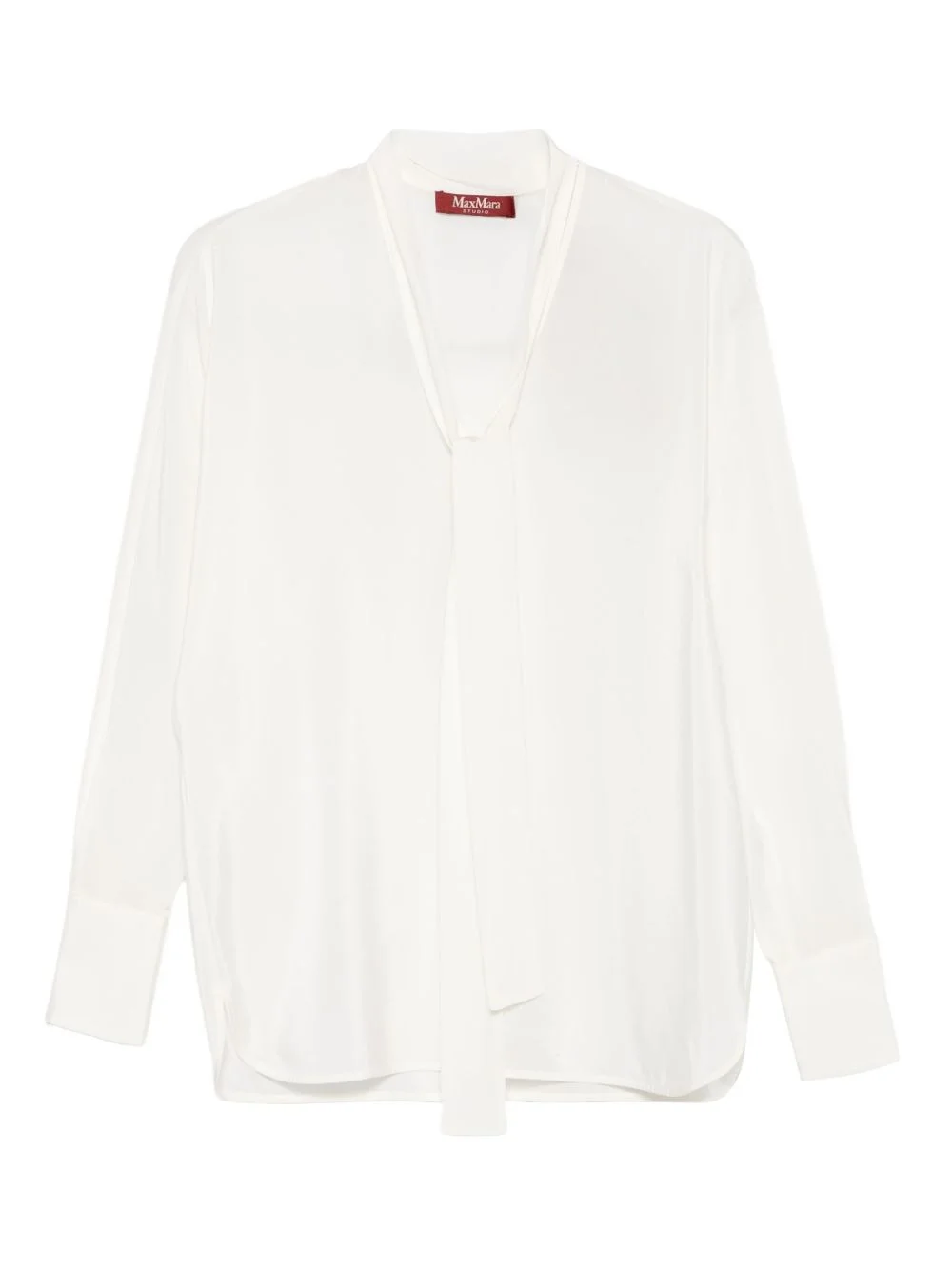 tie-neck silk blouse Highlights - White - Silk - Tie neck - Long sleeves - Cuffed sleeves Imported Composition Silk 100% SIZE & FIT Model measurements Height 5 ft 11 in(1.8 m) Bust/Chest 31.49 in(80 cm) Hips 36.61 in(93 cm) Waist 24.4 in(62 cm) Washing instructions Dry Clean Only