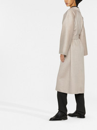 tie-waist cashmere coat tie-waist cashmere coat from Max Mara (VIP) featuring beige, cashmere, wrap design, tied waist, notched lapels, long sleeves, straight hem and mid-calf length. Made in Italy Composition Cashmere 100% SIZE & FIT Model measurements Height 5 ft 10 in(1.78 m) Bust/Chest 30.31 in(77 cm) Hips 36.61 in(93 cm) Waist 24.8 in(63 cm) FittingInformation This piece fits true to size. We recommend you get your regular size Cut for a loose fit. Comes with an adjustable belt for a flexible fit at the waist Made with a mid-weight non-stretch fabric Washing instructions Dry Clean Only