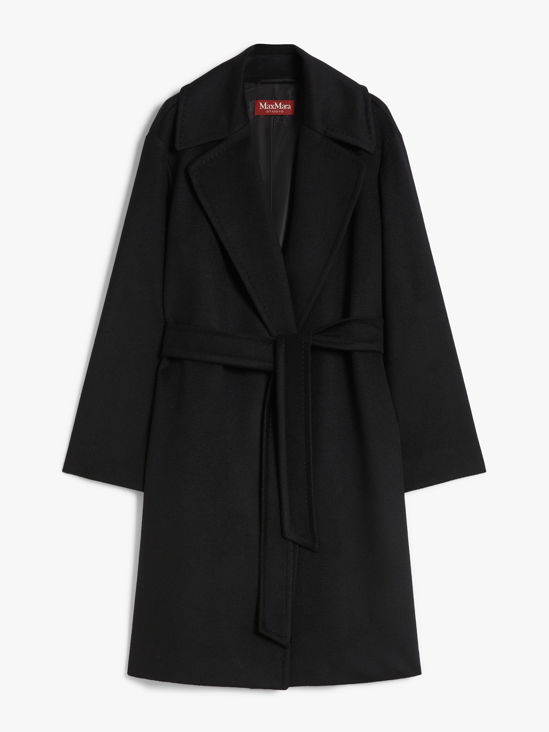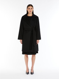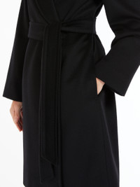 DETAILS Midi robe coat in fine pure wool broadcloth. The lined model boasts a wide lapel collar, long set-in sleeves and in-seam side pockets. Feminine silhouette-accentuating matching belt. COMPOSITION AND CARE Fabric 100% virgin wool; lining 100% viscose. Do not wash; do not bleach; do not tumble dry; cool iron; professionally dry clean perchloroethylene - mild process; do not wet clean. Distributed by Max Mara S.r.l., registered office in Reggio Emilia (Italy), Via Giulia Maramotti 4, 42124 (IT)