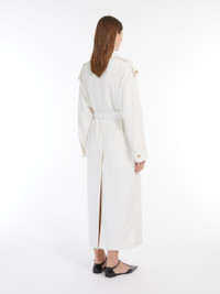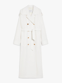 DETAILS Long, double-breasted trench coat made from a luxurious pure wool fabric. Lined model, featuring iconic details such as epaulettes on the shoulders, welt pockets on the sides and a cape on the back. The matching belt accentuates the silhouette. Button fastening. COMPOSITION AND CARE Fabric 100% virgin wool; lining 65% acetate, 35% polyester. Do not wash; do not bleach; do not tumble dry; cool iron; professionally dry clean perchloroethylene - mild process; do not wet clean.; wash the garment while it is fastened.; protect buttons before washing.; turn the articles inside out before washing. Distributed by Max Mara S.r.l., registered office in Reggio Emilia (Italy), Via Giulia Maramotti 4, 42124 (IT)