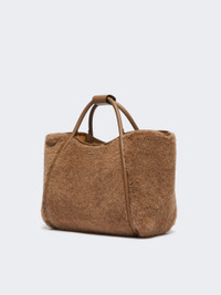 DETAILS Small Marine Bag that features versatile volumes, thanks to the sides that fold away, and an internal ring to attach small leather items. Handbag in alpaca and cashmere Teddy fabric on a silk base Soft-textured interior, zip pocket and customised open pocket Tubular handles with loop and removable adjustable strap Distinguished by Cameluxe padding and smooth leather details Max Mara lettering on the front and five metal feet Magnetic clasp on top Measurements: 37 x 22 x 24 cm COMPOSITION AND CARE Handbag in 63% alpaca, 26% cashmere, 11% silk; with details in cattle; with quilting in 48% polyester, 48% camelwool, 4% silk; lining in 100%polyester. Do not wash; do not bleach; do not tumble dry; do not iron; do not dry clean; do not wet clean. Distributed by Max Mara S.r.l., registered office in Reggio Emilia (Italy), Via Giulia Maramotti 4, 42124 (IT)