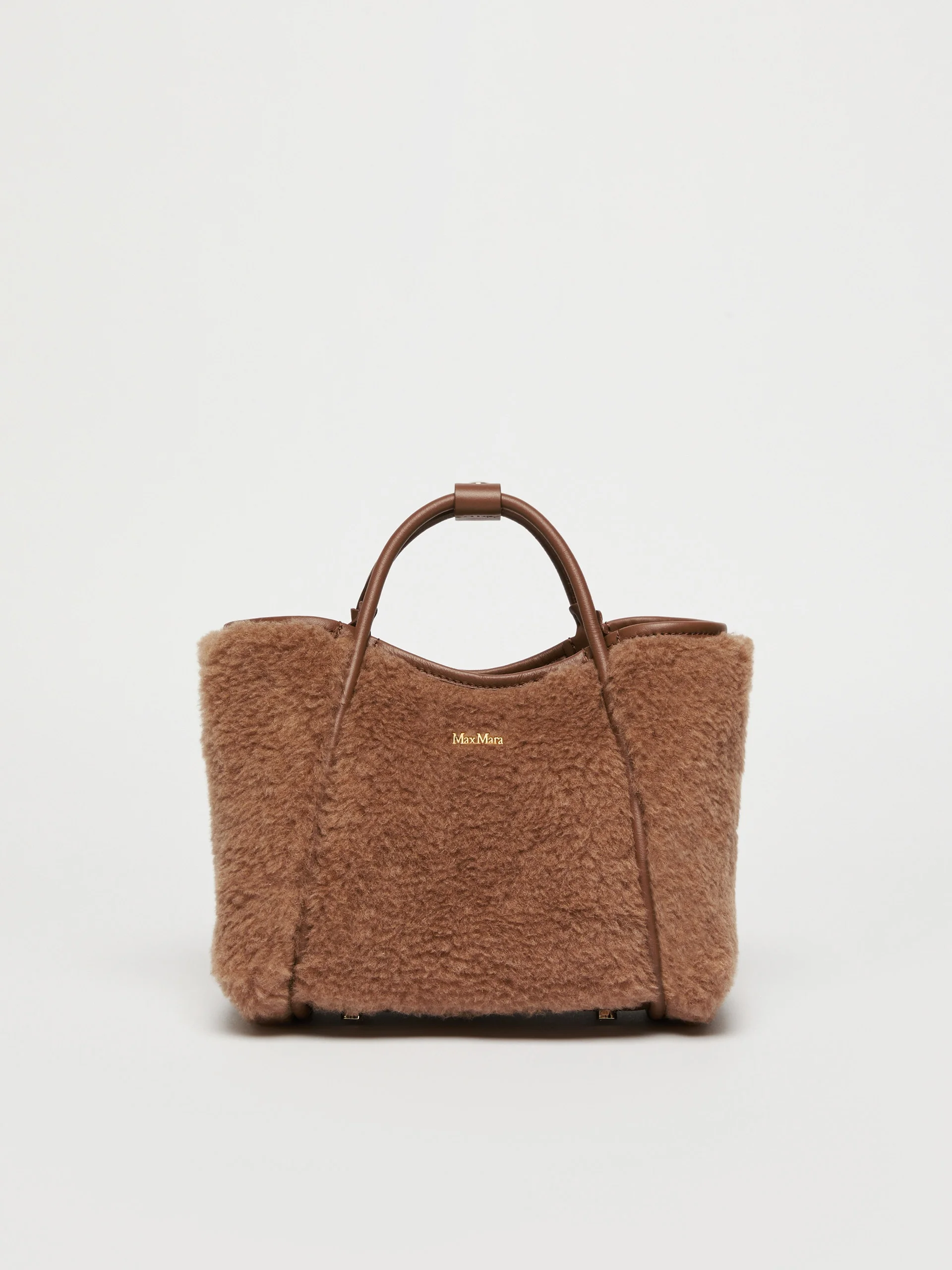 DETAILS Extra small Marine bag that features versatile volumes, thanks to the sides that fold away with an internal ring to hang small leather items. Handbag in camel colour teddy fabric on a silk base Soft-textured interior, zip pocket and customised open pocket Tubular handles with loop and removable adjustable strap Cameluxe padding and smooth leather details Max Mara lettering on the front and four metal feet Magnetic clasp on top Measurements: 24 x 16 x 15 cm COMPOSITION AND CARE Handbag in 88% camelwool, 12% silk; with details in cattle; with quilting in 48% polyester, 48% camelwool, 4% silk; lining in 100%polyester. Do not wash; do not bleach; do not tumble dry; do not iron; do not dry clean; do not wet clean. Distributed by Max Mara S.r.l., registered office in Reggio Emilia (Italy), Via Giulia Maramotti 4, 42124 (IT)