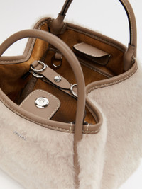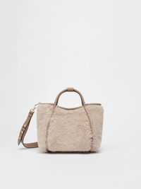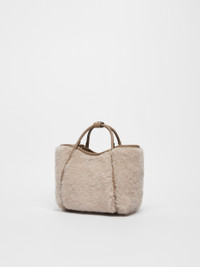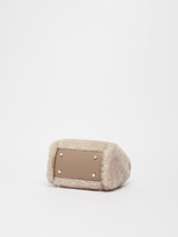 DETAILS Extra-small version of the Marine Bag in alpaca and wool Teddy fabric on a silk base, with Cameluxe padding and smooth leather details. This exclusive creation has a distinctive rounded shape and versatile dimensions thanks to the foldable sides with an internal strap and ring. The iconic tubular leather handles, with a loop to attach them, and the removable adjustable strap allow it to be carried by hand or worn on the shoulder or crossbody. The suede interior has a ring for attaching small leather goods and two internal pockets: open with zip on one side, open with a label on the other. Finished with Max Mara metallic lettering applied on the front and four metallic feet. Magnetic top fastening. Measurements: 24 x 16 x 15 cm. COMPOSITION AND CARE Handbag in 62% alpaca, 26% virgin wool, 12% silk; with details in cattle; with quilting in 48% polyester, 48% camelwool, 4% silk; lining in polyester. Do not wash; do not bleach; do not tumble dry; do not iron; do not dry clean; do not wet clean. Distributed by Max Mara S.r.l., registered office in Reggio Emilia (Italy), Via Giulia Maramotti 4, 42124 (IT)