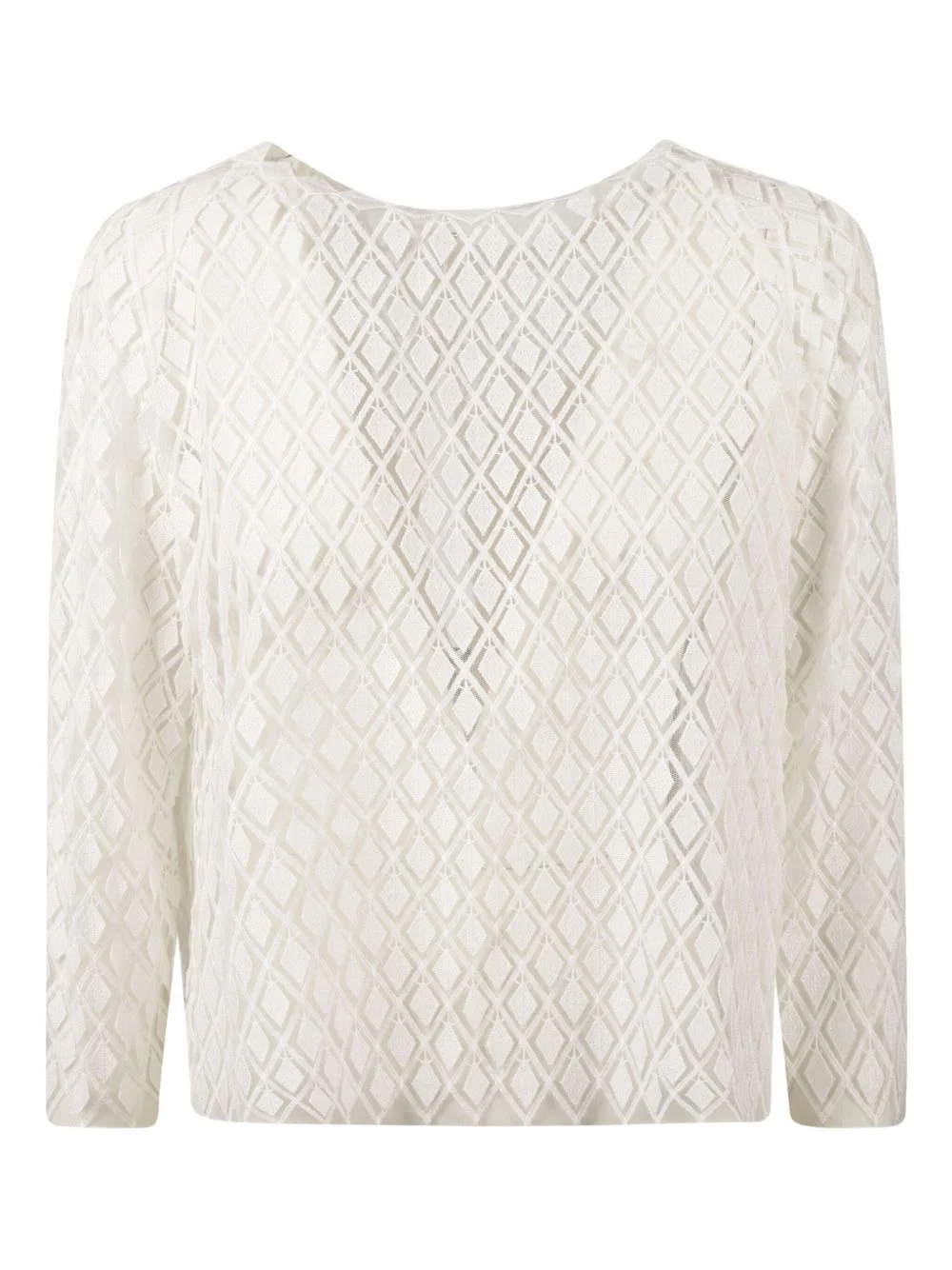 Trento diamond-pattern lace jacket Highlights - Pearl - Diamond pattern - Three-quarter sleeves - Open back - Back button fastening - Lace fabric - Cropped length Imported Composition Fabric 100% Washing instructions Read Manufacturer Guidelines
