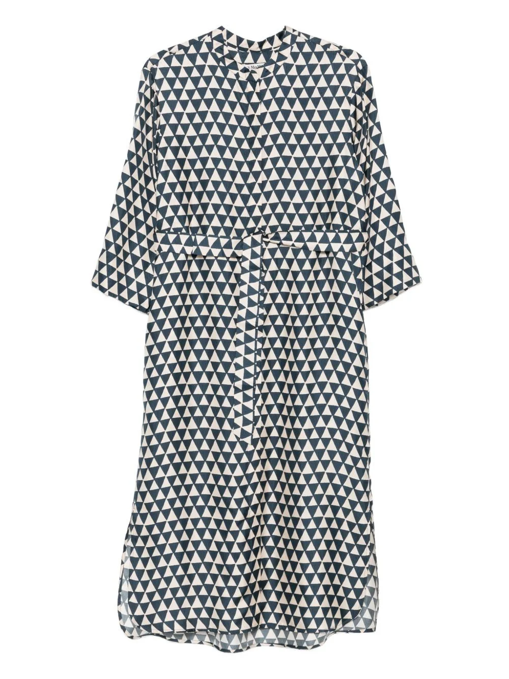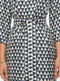 triangle-print belted dress Highlights Imported Composition Silk 100% SIZE & FIT Model measurements Height 5 ft 10 in(1.79 m) Bust/Chest 31.88 in(81 cm) Hips 35.43 in(90 cm) Waist 23.62 in(60 cm)