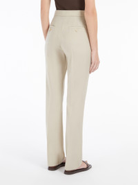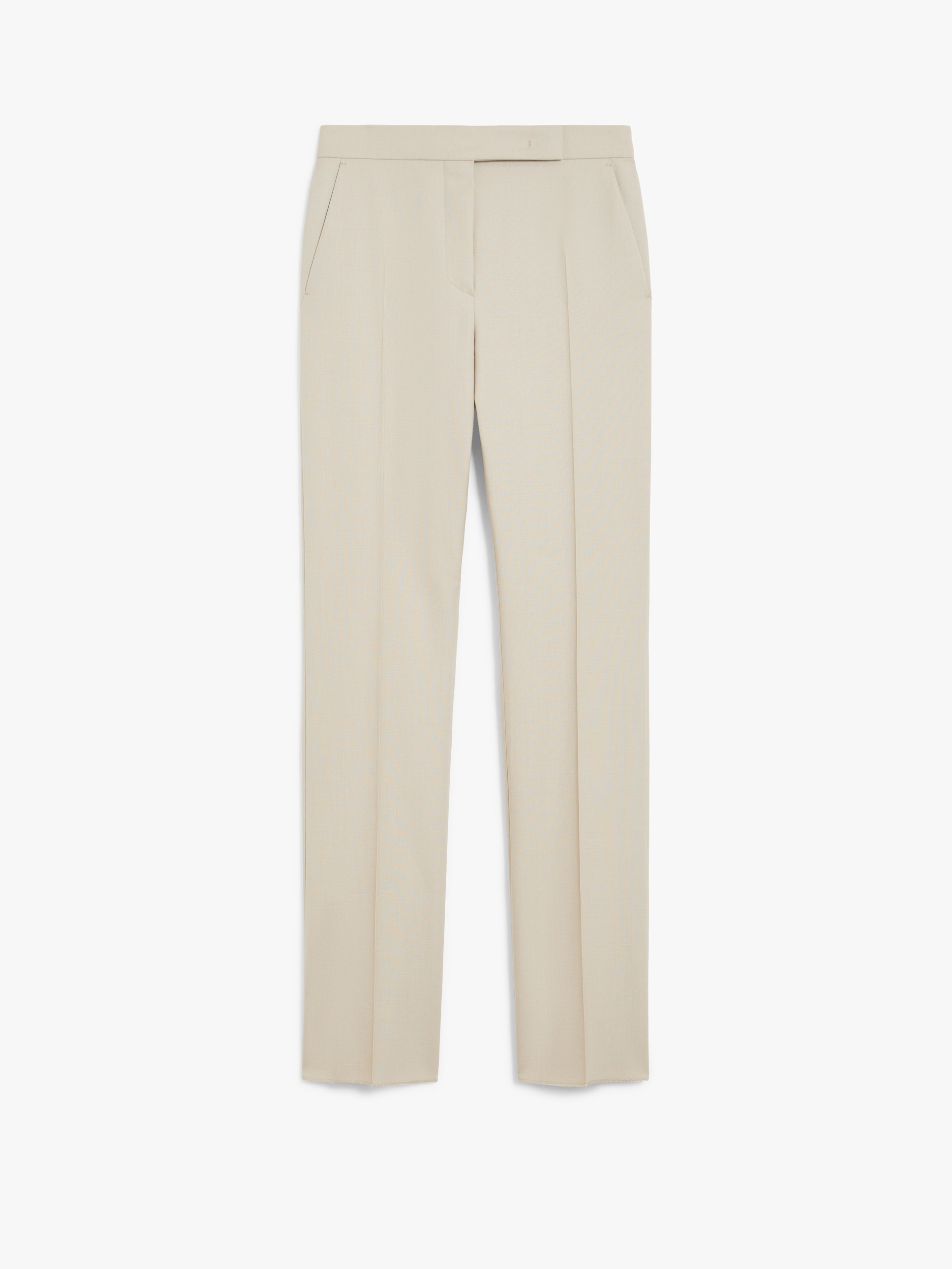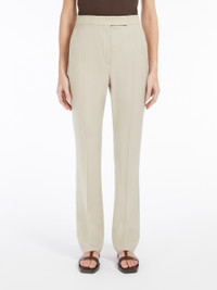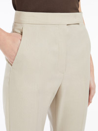 DETAILS Straight-cut trousers made of luxurious wool, mohair and silk cloth. Slim-fit garment, cropped to the ankle, with a trouser crease, side slant pockets and buttoned welt pockets at the back. Fastened with a wide waistband tab, zip fly and small hook. COMPOSITION AND CARE 71% virgin wool, 18% mohair, 11% silk. Do not wash; do not bleach; do not tumble dry; cool iron; professionally dry clean perchloroethylene - mild process; do not wet clean.; do not iron the buttons.; protect buttons before washing.; contains non-textile parts of animal origin. Distributed by Max Mara S.r.l., registered office in Reggio Emilia (Italy), Via Giulia Maramotti 4, 42124 (IT)