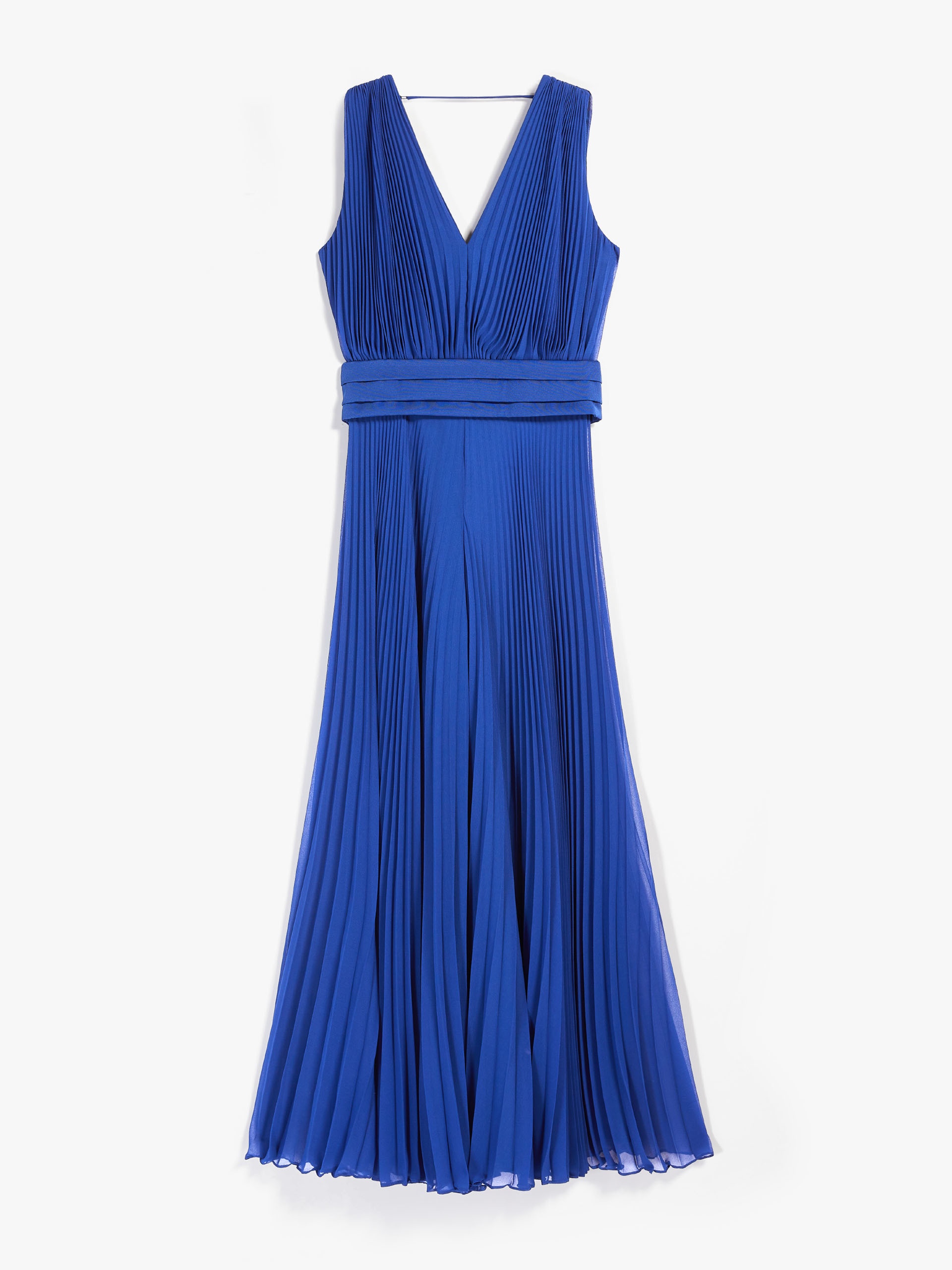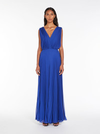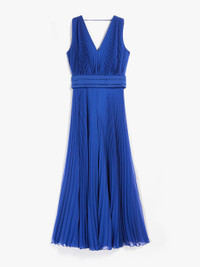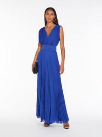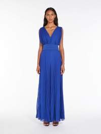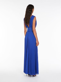 DETAILS Tuxedo jumpsuit in luxurious georgette sablé with a wide, fluid line with a V neck enhanced by an elegant pleated motif. The silhouette features a delicate gathered motif on the left shoulder and a classic faille cummerbund in the same tone. Length: 156 cm. COMPOSITION AND CARE Fabric 100% polyester; lining 85% acetate, 10% silk, 5% nylon. Do not wash; do not bleach; do not tumble dry; cool iron; professionally dry clean perchloroethylene - mild process; do not wet clean. Distributed by Max Mara S.r.l., registered office in Reggio Emilia (Italy), Via Giulia Maramotti 4, 42124 (IT)
