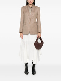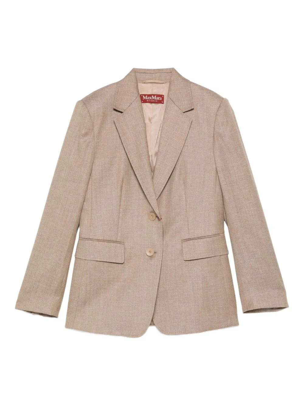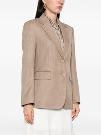 two-button blazer Highlights - Brown - Two button fastening - Notched lapel - Flap pockets - Long sleeves Imported Composition Outer: Virgin Wool 67%, Viscose 25%, Linen/Flax 8% Lining: Acetate 70%, Polyester 30% SIZE & FIT Model measurements Height 5 ft 10 in(1.78 m) Bust/Chest 33.46 in(85 cm) Hips 36.22 in(92 cm) Waist 23.22 in(59 cm) Washing instructions Dry Clean Only