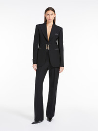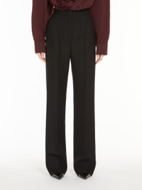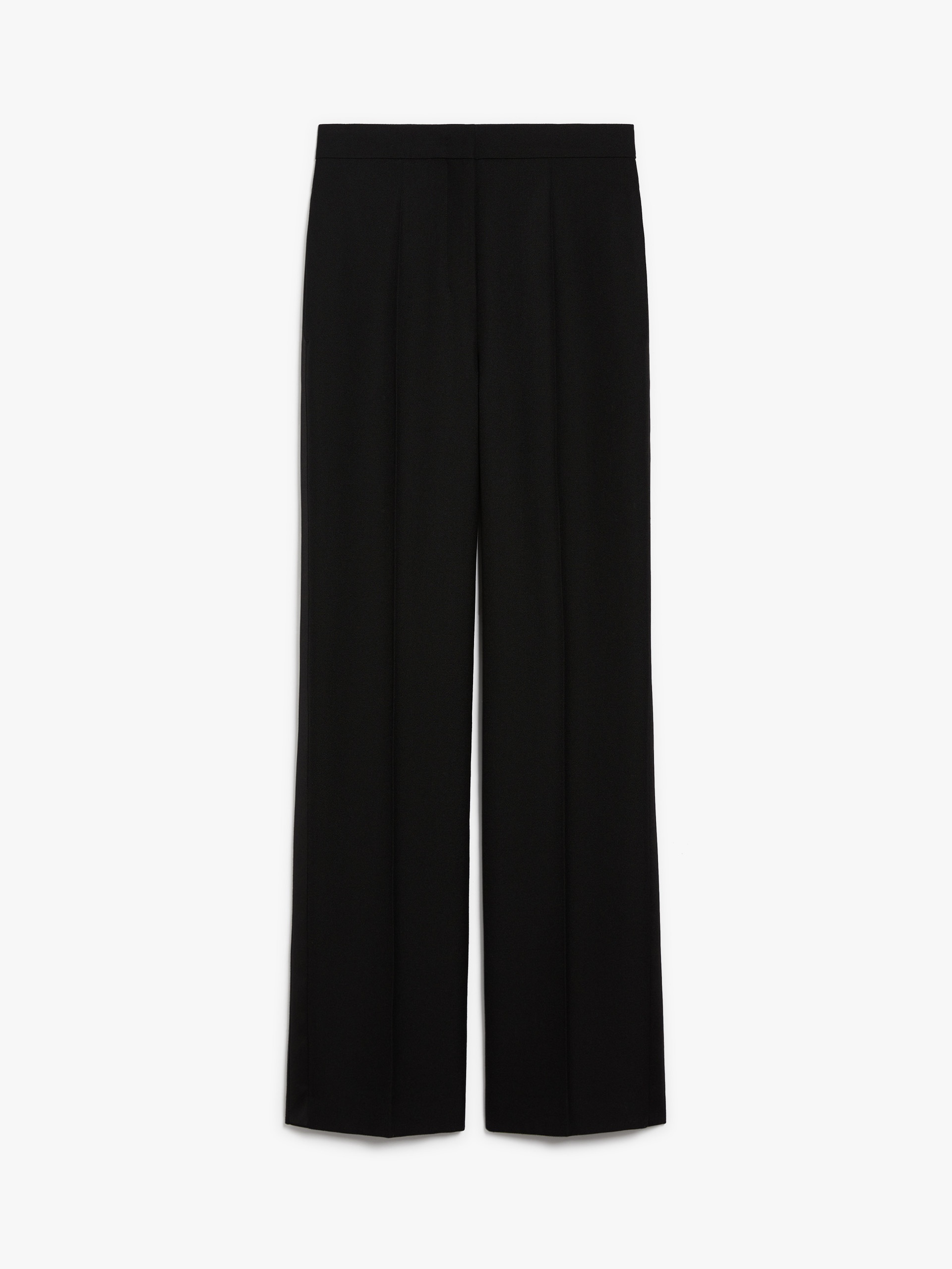 DETAILS Long, straight-leg trousers, made of fine pure wool grain de poudre. The model is distinguished by a tone-on-tone satin side band, inset side pockets and welt pockets on the back. Finished with a trouser crease, they fasten with a wide waistband, zip fly and hook. COMPOSITION AND CARE 100% virgin wool. Do not wash; do not bleach; do not tumble dry; cool iron; professionally dry clean perchloroethylene - mild process; do not wet clean.; wash the garment while it is fastened. Distributed by Max Mara S.r.l., registered office in Reggio Emilia (Italy), Via Giulia Maramotti 4, 42124 (IT)