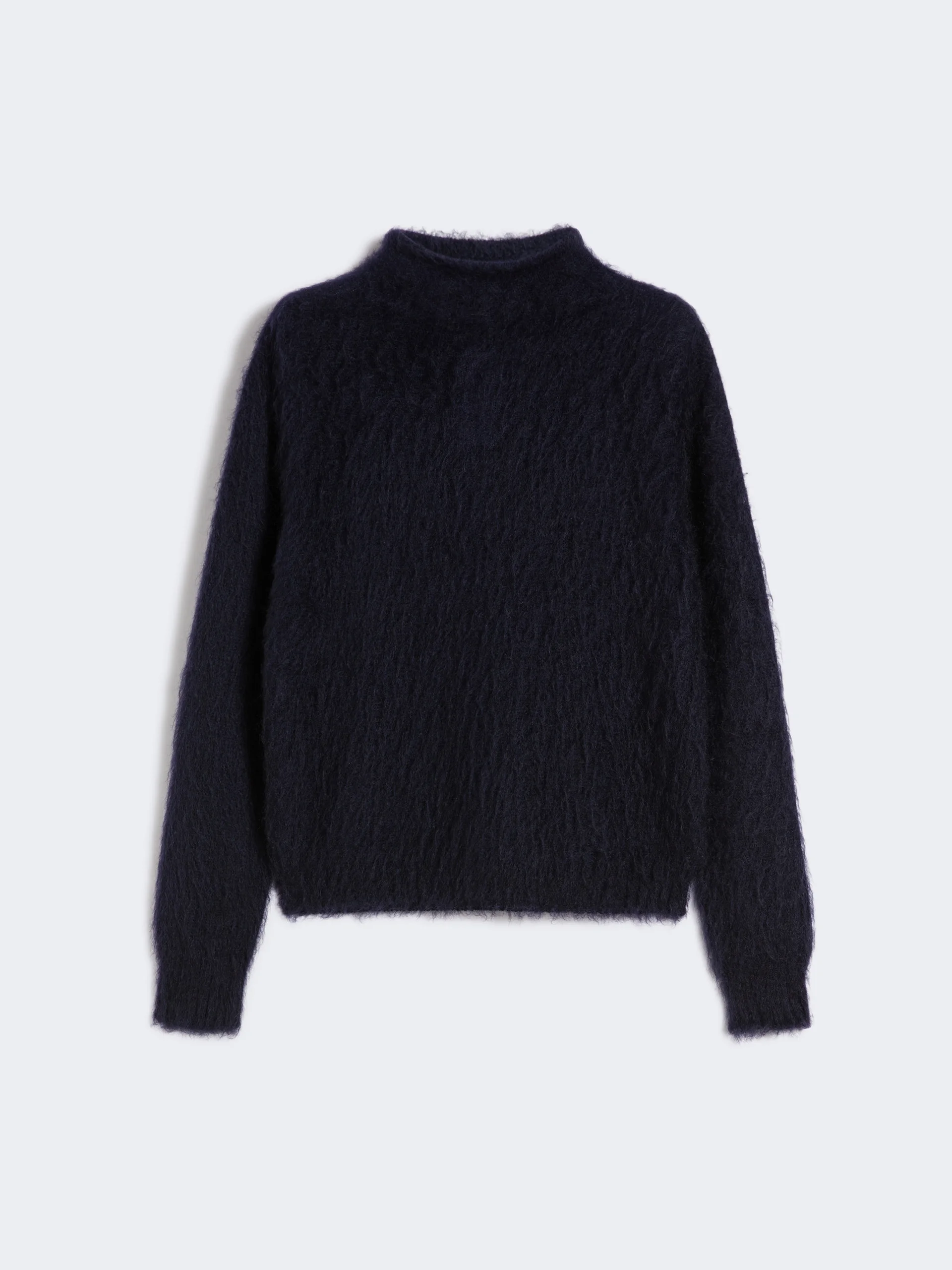 DETAILS Sweater crafted with seamless side construction, ensuring optimal comfort and a harmonious fit. The soft, enveloping silhouette enhances the garment's effortless charm. Turtleneck sweater in carded mohair-blend yarn Relaxed silhouette High neck collar Long sleeves with dropped shoulders Rib-knit cuffs and trims Straight hem COMPOSITION AND CARE 50% polyamide, 46% mohair, 4% wool. Do not wash; do not bleach; do not tumble dry; cool iron; professionally dry clean perchloroethylene - mild process; do not wet clean.; iron with a cloth between. Distributed by Max Mara S.r.l., registered office in Reggio Emilia (Italy), Via Giulia Maramotti 4, 42124 (IT)