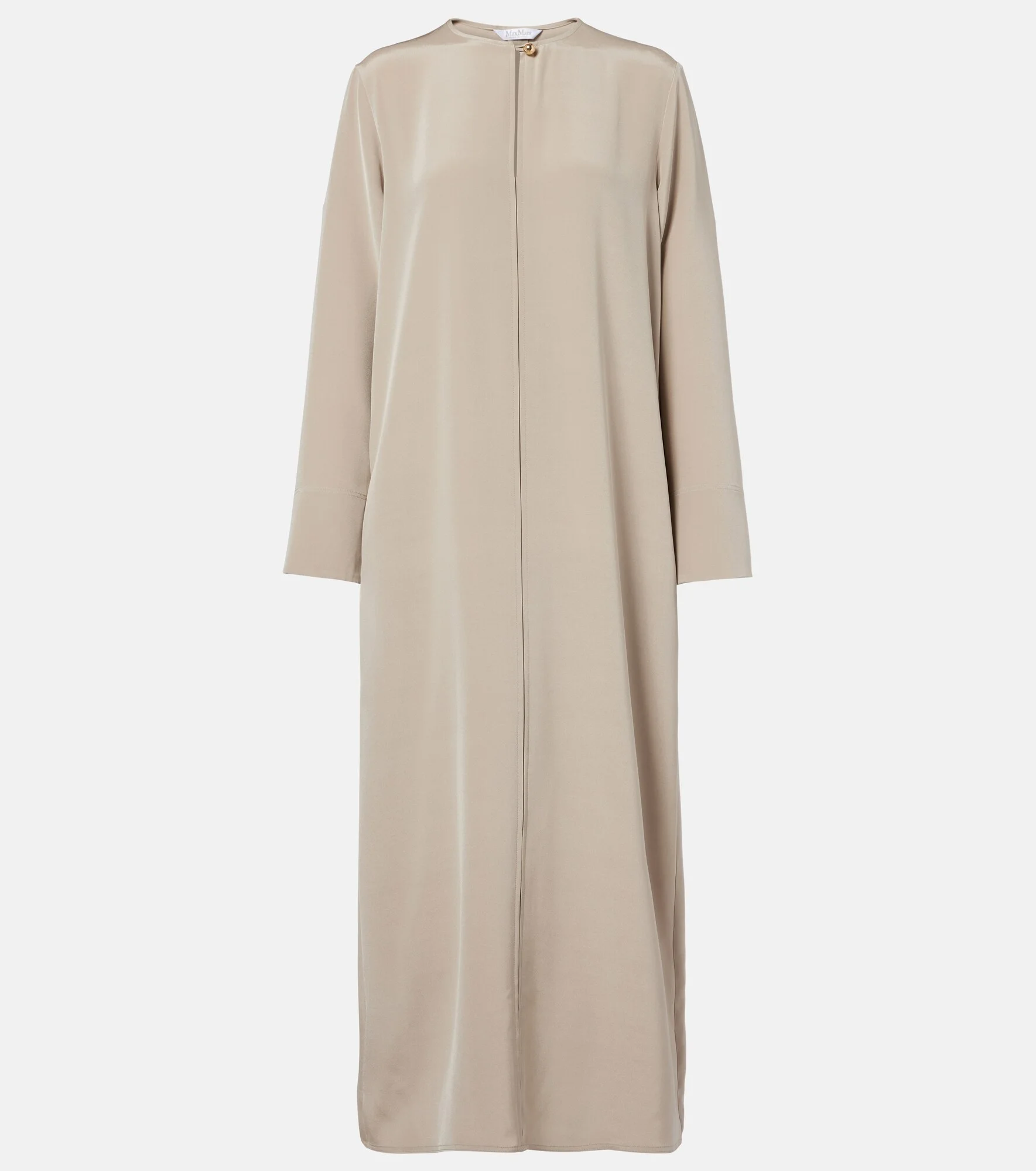 Boasting a rich manufacturing history, Max Mara represents the quintessence of Italian sophistication and expertise. Crafted from a fluid silk-blend, the Unghia midi dress features a relaxed fit, side-slit pockets, and a single vent for a comfortable drape. Product Details - Material: 91% silk, 9% elastane - Care instructions: dry clean - Made in Italy - Color: grey - Designer color name: Greggio - Closure: button fastening - Pockets: side slit pockets - Long vent - Item number: P01152540 Size & Fit - True to size - Designed for a loose fit - Non-stretchy fabric - slit length 41cm-16" - The model seen in the picture is 178cm-5'10" and wearing a size DE 34