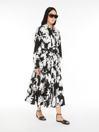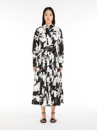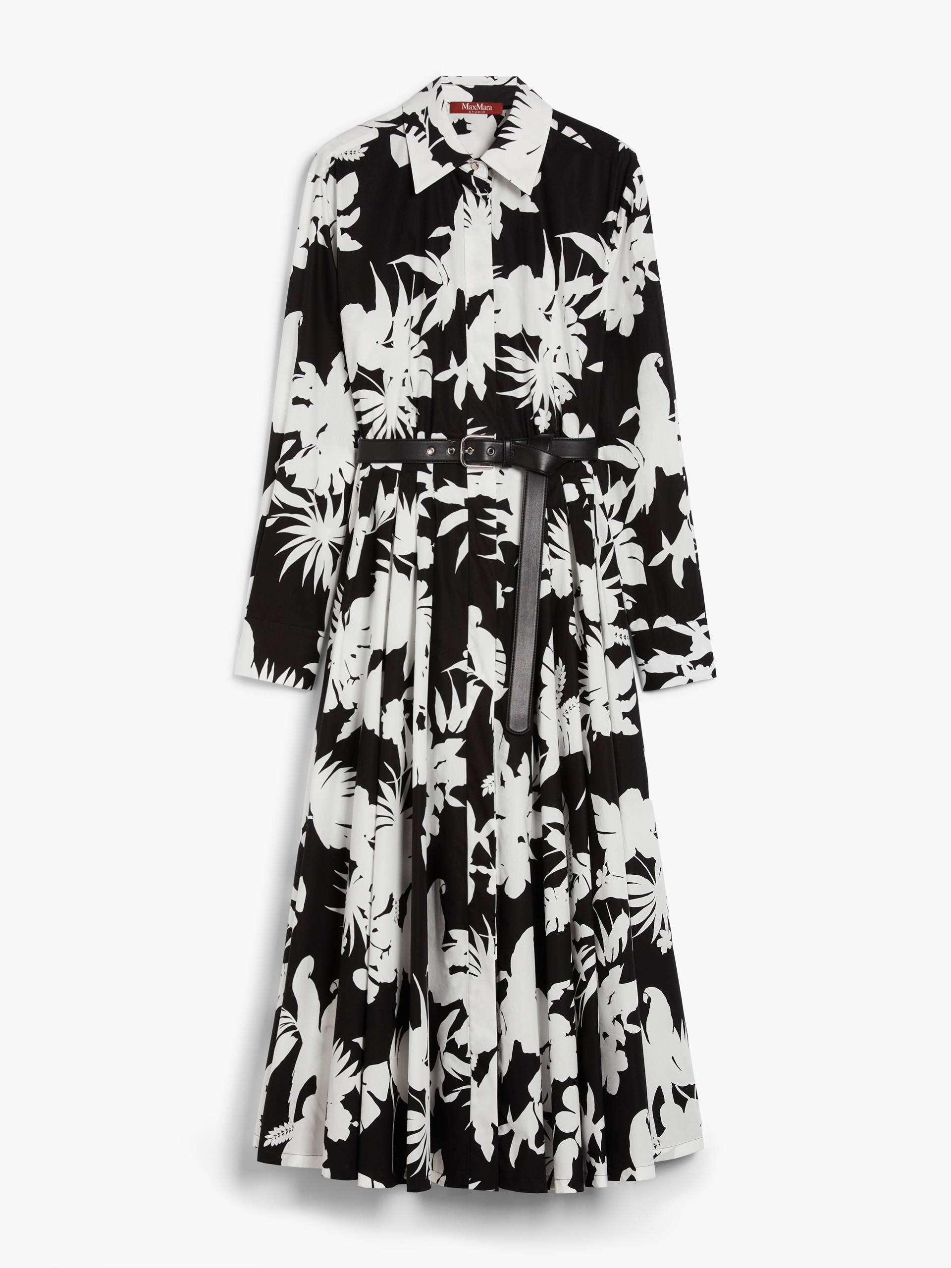 DETAILS Long shirt dress made of soft, pure-cotton poplin with an all-over printed pattern. Unlined style with a classic shirt collar, inset side pockets and long sleeves with buttoned cuffs. Features side slits at the hem and a pleated pattern at the front. The matching belt accentuates the silhouette. Concealed button fastening at the front. COMPOSITION AND CARE Dress 100% cotton. Dress: machine wash cold delicate cycle; do not bleach; do not tumble dry; line drying in the shade; cool iron; professionally dry clean perchloroethylene - mild process.; Wash the garment while it is fastened.; Do not iron the buttons.; Turn the articles inside out before washing.; Contains non-textile parts of animal origin. Belt: do not wash; do not bleach; do not tumble dry; do not iron; do not dry clean; do not wet clean. Distributed by Max Mara S.r.l., registered office in Reggio Emilia (Italy), Via Giulia Maramotti 4, 42124 (IT)