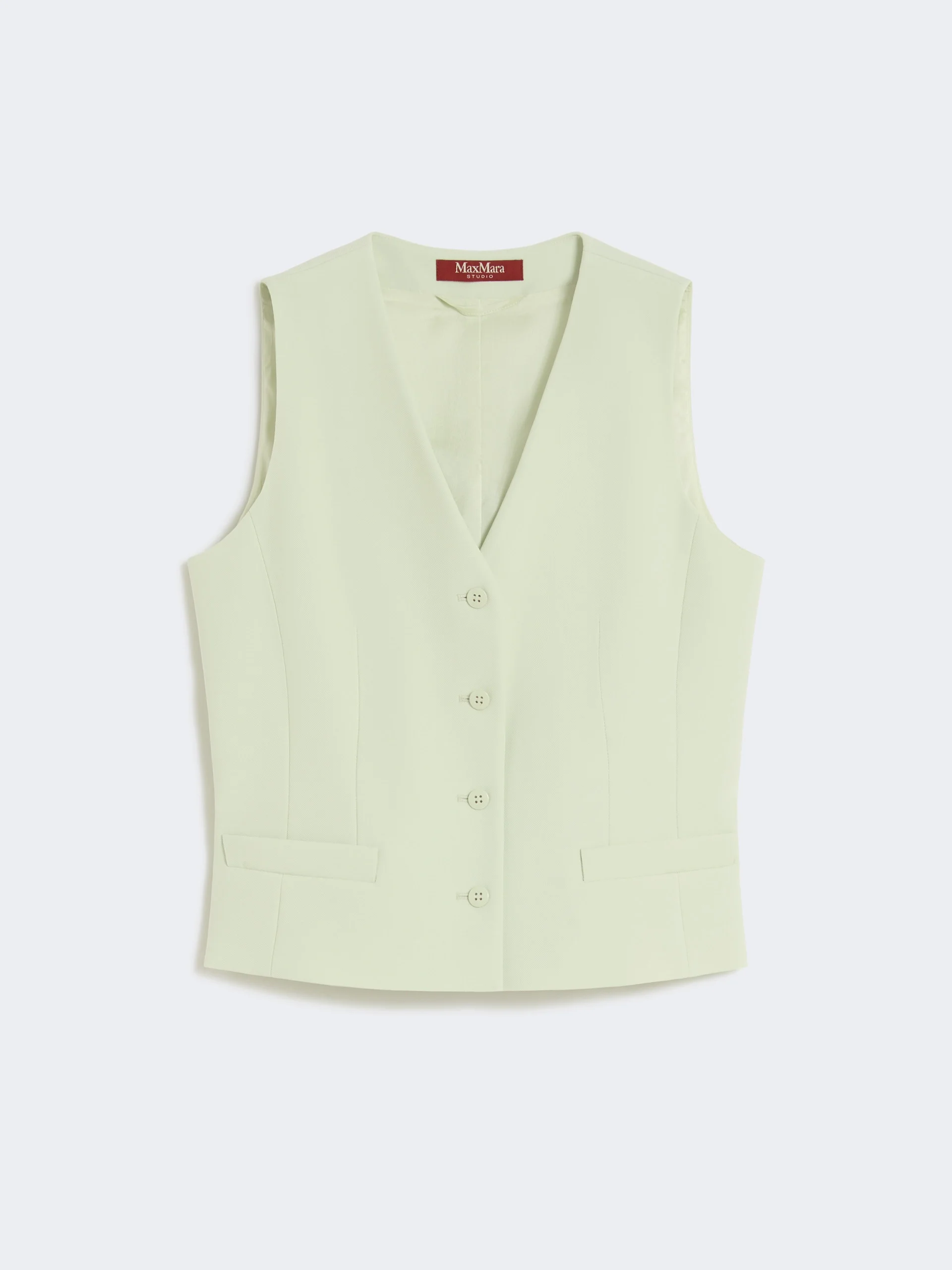DETAILS Vest with a feminine silhouette, slightly fitted at the waist and with a small central slit on the back. - Gilet in comfortable wool satin crepe fabric - V-neckline - Visible button fastening on the front - Horizontal maxi-welt pockets on the front - Adjustable strap at the back - Lined COMPOSITION AND CARE Fabric 100% virgin wool; lining 70% acetate, 30% polyester. Do not wash; do not bleach; do not tumble dry; cool iron; professionally dry clean perchloroethylene - mild process; do not wet clean.; wash the garment while it is fastened.; do not iron the buttons.; protect buttons before washing.; turn the articles inside out before washing. Distributed by Max Mara S.r.l., registered office in Reggio Emilia (Italy), Via Giulia Maramotti 4, 42124 (IT) Collection: Studio Product code: 6151016106048 - MSTMADIA