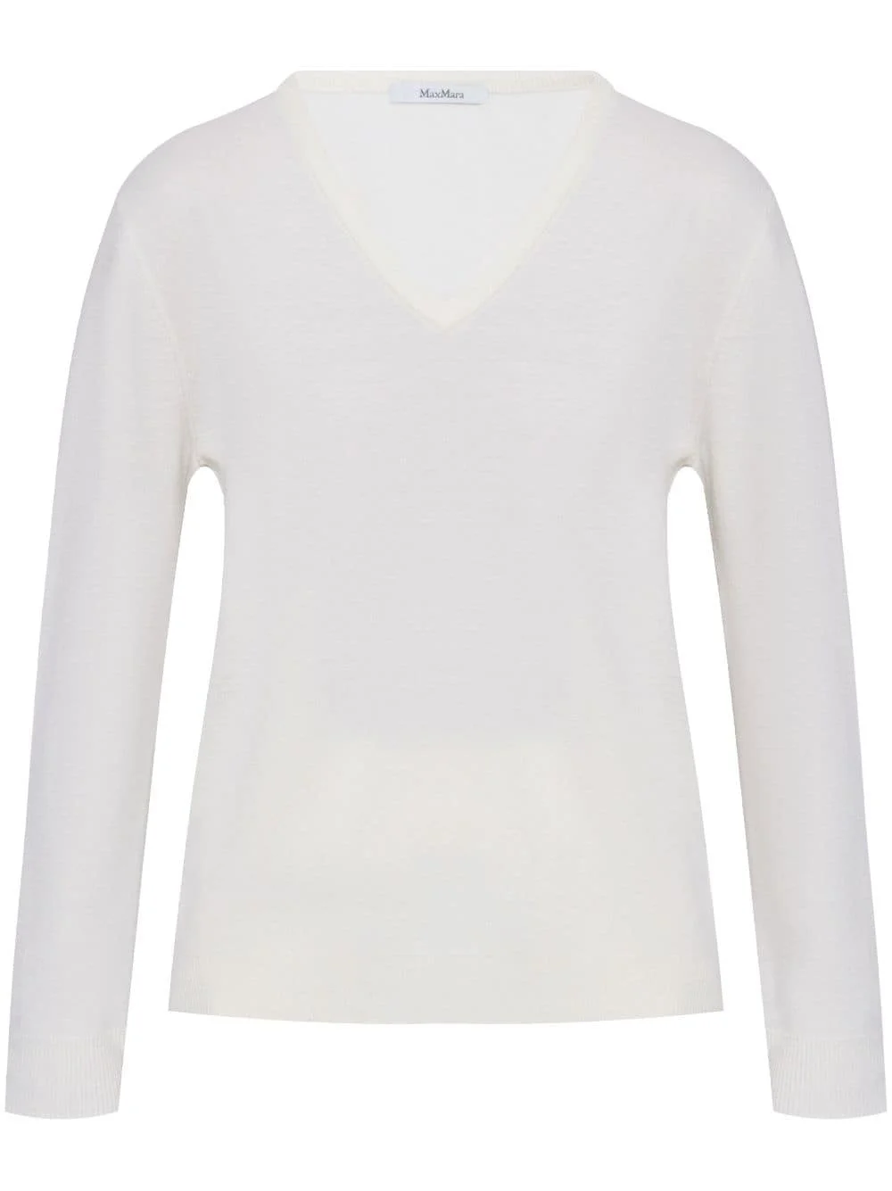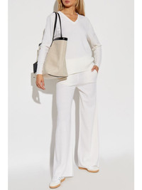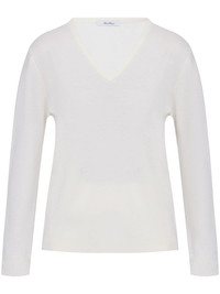 v-neck wool knit top Highlights - White - Wool - V-neck - Long sleeves - Ribbed cuffs and hem Made In Italy Composition Wool 100% SIZE & FIT FittingInformation Designed to be unstructured, offering a loose fit throughout Made with a midweight knit, this piece offers some stretch