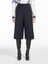 DETAILS Knee-length Bermuda shorts made of soft wool jersey in a Milan stitch knit. This design features a straight-leg silhouette with a trouser crease, slanted side pockets and five metal buttons in a sailor style on the sides. Lined, with a concealed zip fastening on the left side. COMPOSITION AND CARE 57% wool, 20% lyocell, 19% polyamide, 3% elastane, 1% polyester. Do not wash; do not bleach; do not tumble dry; cool iron; professionally dry clean perchloroethylene - mild process; do not wet clean.; iron with a cloth between.; protect buttons before washing.; turn the articles inside out before washing.; put this item into a string bag before washing it.; to be ironed on reverse. Distributed by Max Mara S.r.l., registered office in Reggio Emilia (Italy), Via Giulia Maramotti 4, 42124 (IT)