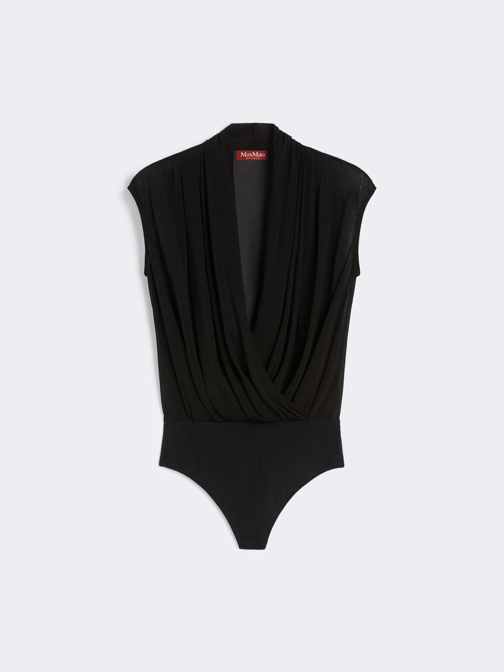 DETAILS Sleeveless T-shirt featuring a draped bodysuit design on the front. T-shirt in lightweight viscose jersey fabric Slim fit Crossover V-neckline Small press-stud fastening at the hem COMPOSITION AND CARE Upper part 100% viscose; lower part 94% polyamide, 6% elastane. Do not wash; do not bleach; do not tumble dry; cool iron; professionally dry clean perchloroethylene - mild process; do not wet clean.; iron with a cloth between. Distributed by Max Mara S.r.l., registered office in Reggio Emilia (Italy), Via Giulia Maramotti 4, 42124 (IT)