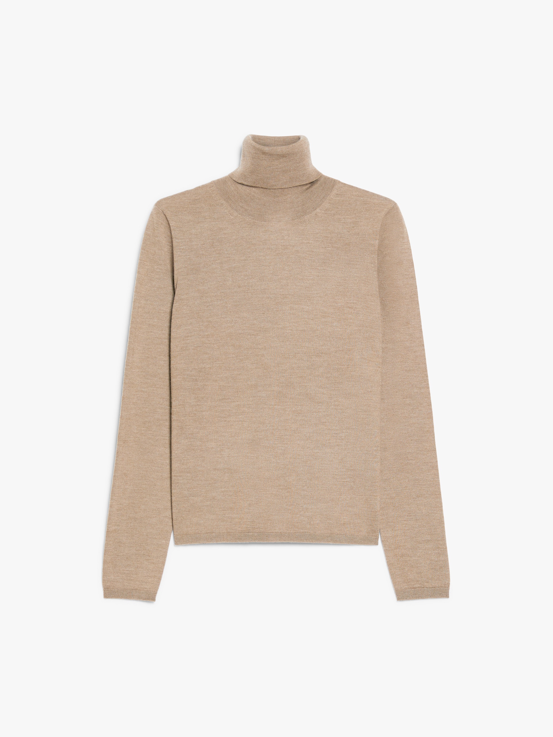 DETAILS Fine, very light pure cashmere yarn turtleneck sweater featuring a high collar and long sleeves. This regular fit garment features a smooth stocking stitch, ensuring comfort and versatility. Ribbed trim. COMPOSITION AND CARE 100% cashmere. Hand wash cold; do not bleach; do not tumble dry; flat drying in the shade; cool iron; professionally dry clean perchloroethylene - mild process; do not wet clean.; iron with a cloth between.; using neutral detergent. Distributed by Max Mara S.r.l., registered office in Reggio Emilia (Italy), Via Giulia Maramotti 4, 42124 (IT)