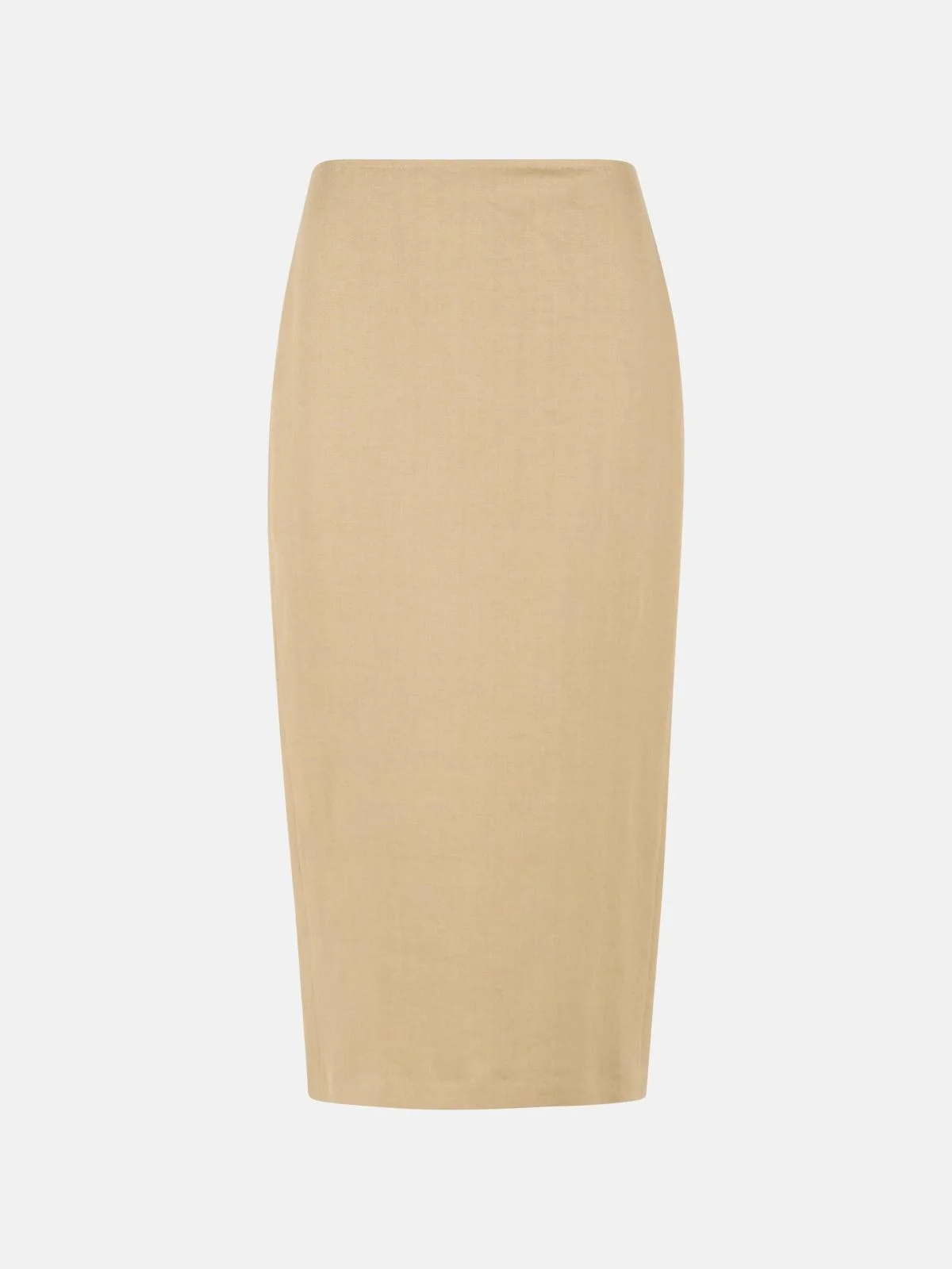 'VERANDA' DIAGONAL SLIM SKIRT OF CAMEL LINEN