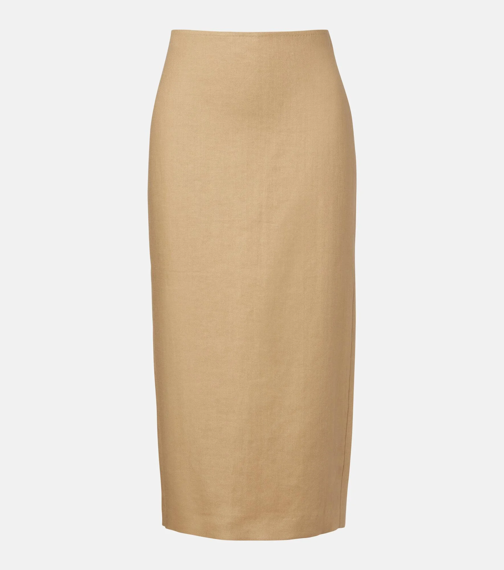 Boasting a rich manufacturing history, Max Mara represents the quintessence of Italian sophistication and expertise. Made from pure linen, the Veranda pencil skirt elegantly sculpts the silhouette. Product Details - Material: 100% linen - Care instructions: dry clean - Made in Italy - Color: beige - Designer color name: Sand - Lining: 95% acetate, 5% elastane - Closure: concealed zipped back - Vent: single - Item number: P01158176 Size & Fit - True to size - Non-stretchy fabric - slit length 39cm-15.5" - The model seen in the picture is 178cm-5'10" and wearing a size DE 34
