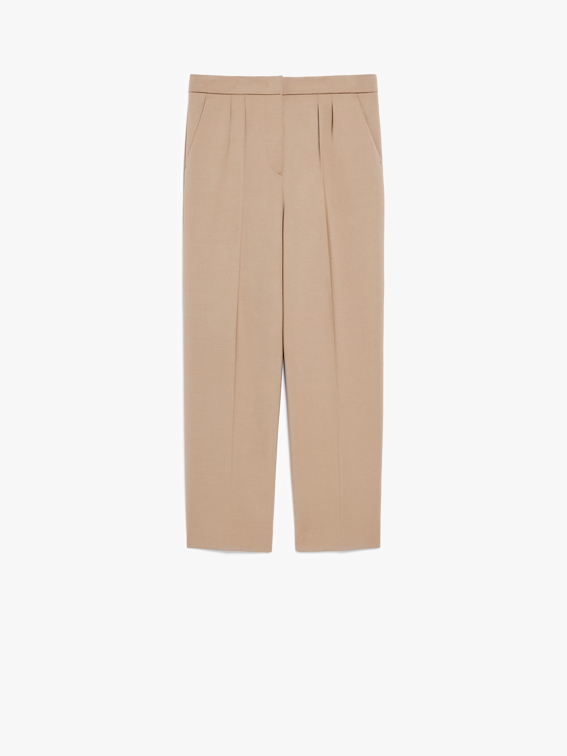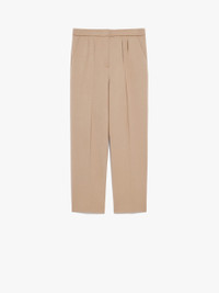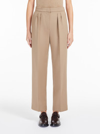 DETAILS High-waisted trousers made of double stretch wool canvas with a slim fit silhouette, straight leg, double pleats on the front and pockets inserted on the sides. Cropped model at the ankle, embellished with a trouser crease. Fastening with a wide waistband tab, zip fly and small hook. COMPOSITION AND CARE Fabric 96% virgin wool, 4% elastane; - except joining thread. Do not wash; do not bleach; do not tumble dry; cool iron; professionally dry clean perchloroethylene - mild process; do not wet clean.; protect buttons before washing. Distributed by Max Mara S.r.l., registered office in Reggio Emilia (Italy), Via Giulia Maramotti 4, 42124 (IT)