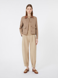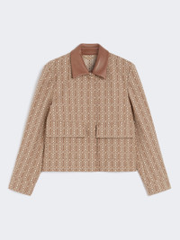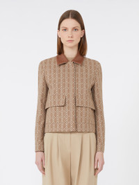 DETAILS Straight-cut single-breasted jacket with a distinctive boxy fit. Jacket in MaxMarabesque jacquard cotton double fabric Leather shirt collar Long set-in sleeves with shirt-style cuffs Concealed front fastening Patch pockets with flap on the front Unlined COMPOSITION AND CARE Fabric 100% cotton; - except joining thread; with details in genuine ovine leather. Do not wash; do not bleach; do not tumble dry; cool iron; professionally dry clean perchloroethylene - mild process; do not wet clean.; do not wash or dry clean by fabric methods. clean only by leather and fur specialists.; do not iron the real leather details.; do not iron the buttons.; protect buttons before washing.; contains non-textile parts of animal origin. Distributed by Max Mara S.r.l., registered office in Reggio Emilia (Italy), Via Giulia Maramotti 4, 42124 (IT)