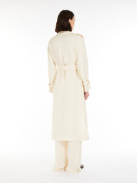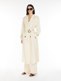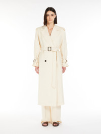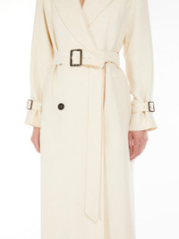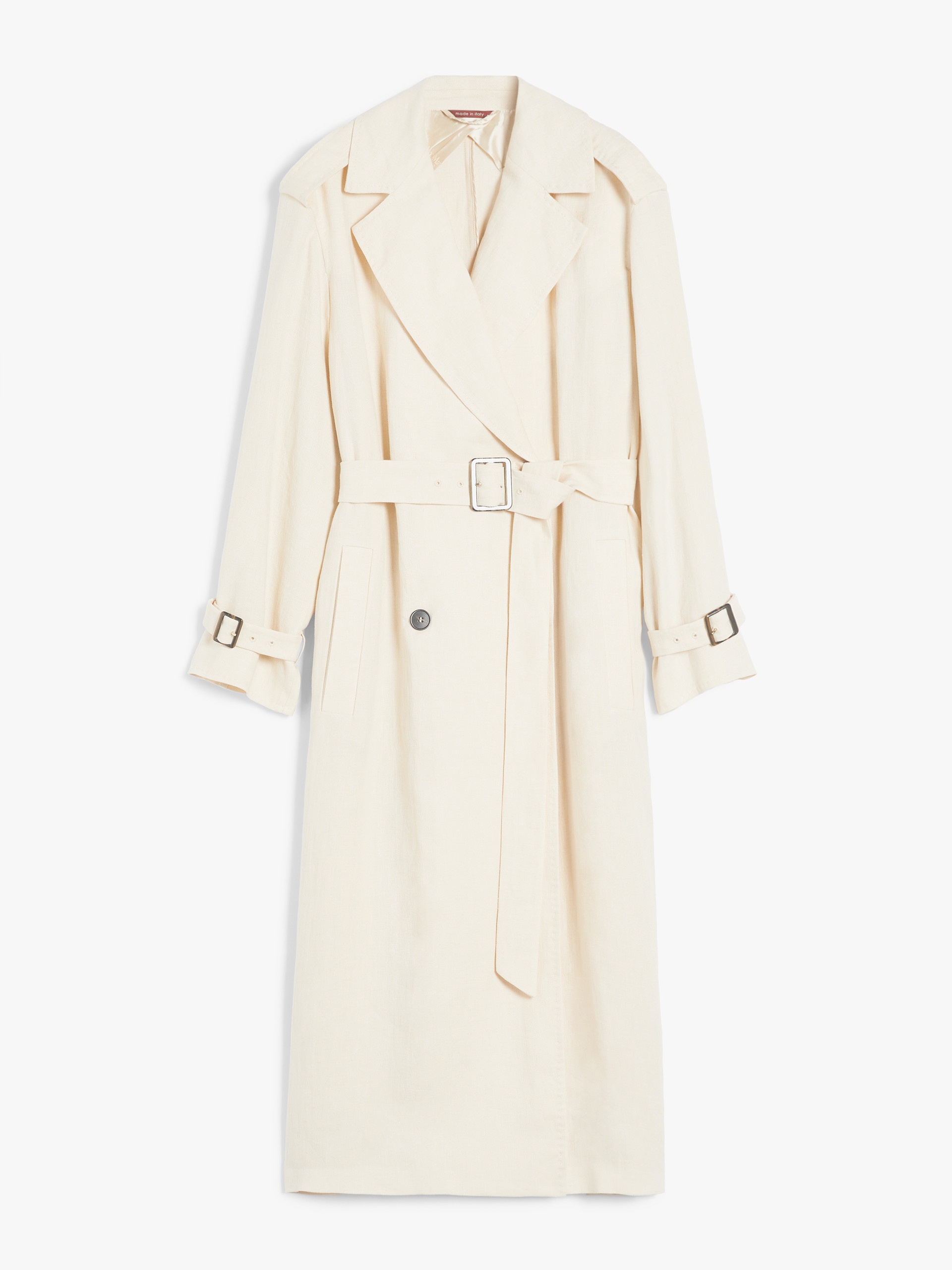DETAILS Double-breasted trench coat made of faded Batavia pure linen. Unlined style featuring iconic details: toggles on the shoulders and cuffs, welt pockets on the sides, side slits and belt loops at the sides. The matching belt accentuates the silhouette. Horn button fastening. COMPOSITION AND CARE Fabric 100% flaxlinen; lining 58% viscose, 42% cupro. Do not wash; do not bleach; do not tumble dry; cool iron; professionally dry clean perchloroethylene - mild process; do not wet clean.; do not iron the buttons.; protect buttons before washing.; contains non-textile parts of animal origin. Distributed by Max Mara S.r.l., registered office in Reggio Emilia (Italy), Via Giulia Maramotti 4, 42124 (IT)