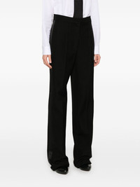 virgin wool trousers Highlights - Black - Virgin wool - Interlock weave - Concealed front button, hook and zip fastening - Two side slit pockets - Side stripe detailing - Two rear welt pockets - Long length - Straight leg Made in Italy Composition Virgin Wool 100% SIZE & FIT Model measurements Height 5 ft 9 in(1.75 m) Bust/Chest 31.88 in(81 cm) Hips 34.64 in(88 cm) Waist 24.01 in(61 cm) FittingInformation Designed for a straight-leg fit, these trousers allow for a close fit at the waist and an unrestricted, comfortable fit over the leg Made from a midweight non-stretch fabric