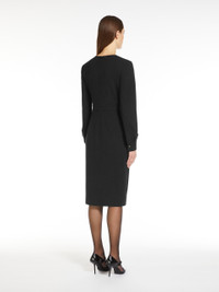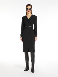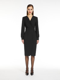 DETAILS A feminine dress crafted from soft wool and viscose jersey, featuring a tailored silhouette. This garment features a V-neck top crossed at the waist, a wrap-around skirt with a slight central slit in the front and long sleeves with shirt cuffs and buttons. Hook and zip fastening on the back. COMPOSITION AND CARE Jersey fabric 71% viscose, 15% polyamide, 14% wool; lining 62% acetate, 38% polyester. Do not wash; do not bleach; do not tumble dry; cool iron; professionally dry clean perchloroethylene - mild process; do not wet clean.; iron with a cloth between. Distributed by Max Mara S.r.l., registered office in Reggio Emilia (Italy), Via Giulia Maramotti 4, 42124 (IT)