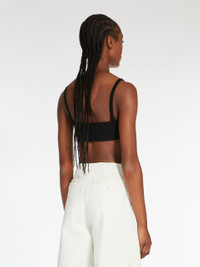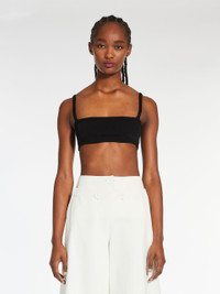 DETAILS Bandeau top with thin shoulder straps made of a stretch viscose knit with a compact, soft texture. Snug, comfortable fit. COMPOSITION AND CARE 83% viscose, 17% polyester. Hand wash cold; do not bleach; do not tumble dry; flat drying in the shade; cool iron; professionally dry clean perchloroethylene - mild process; do not wet clean.; iron with a cloth between.; using neutral detergent. Distributed by Max Mara S.r.l., registered office in Reggio Emilia (Italy), Via Giulia Maramotti 4, 42124 (IT)