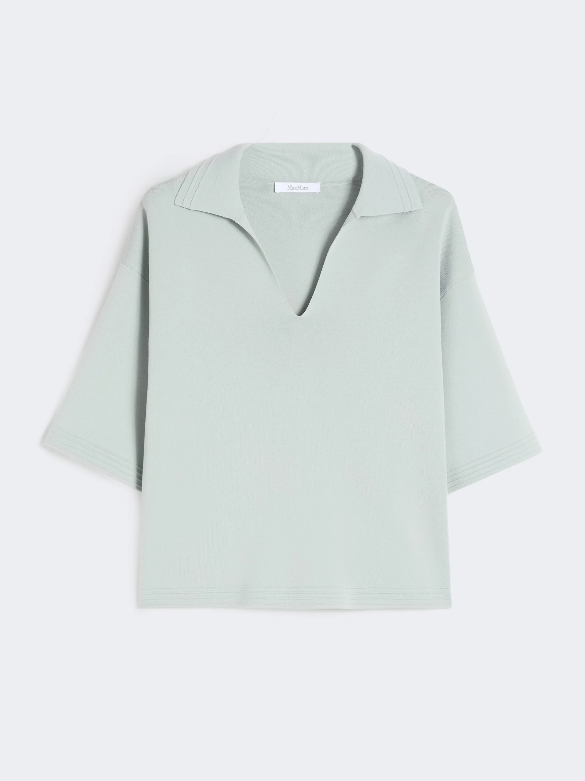 DETAILS Jumper with polo-style collar and open V-neck on the front. - Viscose crepe yarn jumper - Interlock stitch knit - Boxy line - Wide, low-set, elbow-length sleeves - Straight hem COMPOSITION AND CARE 65% viscose, 35% polyamide. Hand wash cold (40°c max); do not bleach; do not tumble dry; flat drying in the shade; cool iron; professionally dry clean perchloroethylene - mild process; do not wet clean.; iron with a cloth between.; using neutral detergent. Distributed by Max Mara S.r.l., registered office in Reggio Emilia (Italy), Via Giulia Maramotti 4, 42124 (IT) Collection: Max Mara Product code: 1361036906002 - MXPDOLCE
